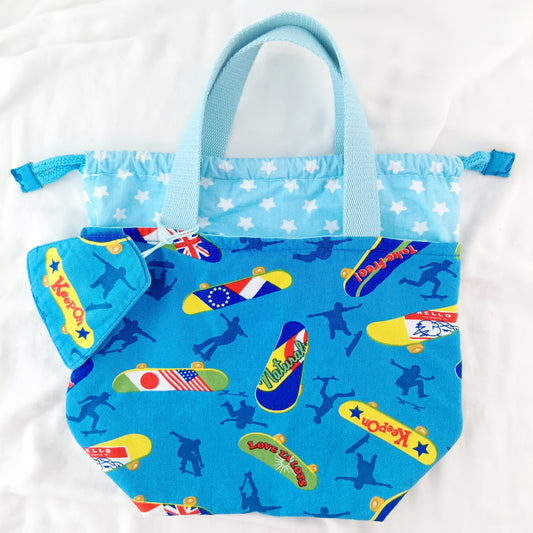 附姓名吊牌。帥氣滑板。幼兒園小學適用 可機洗束口便當袋 餐袋
