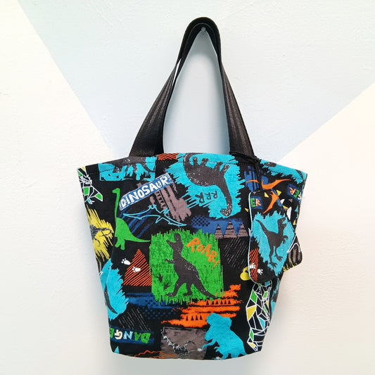 附姓名吊牌。色塊恐龍。幼兒園小學適用 可機洗束口便當袋 餐袋