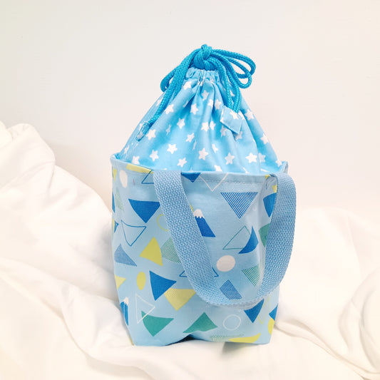 附姓名吊牌。幾何富士山。幼兒園小學適用 可機洗束口便當袋 餐袋