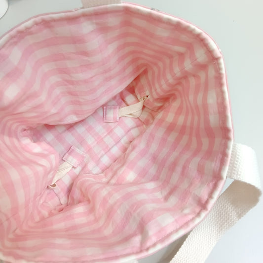 附姓名吊牌。莫蘭迪兔兔。幼兒園小學適用 可機洗束口便當袋 餐袋