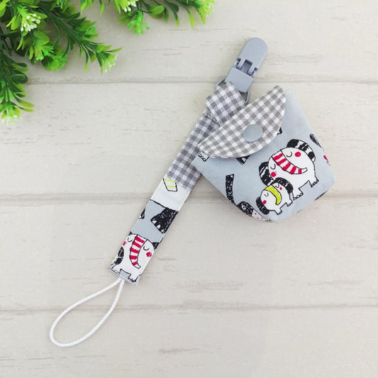 親子象-2色可選。奶嘴袋+奶嘴鏈 (可繡名字)