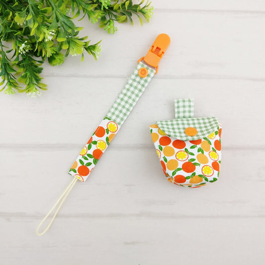 小橘子。奶嘴袋+奶嘴鏈 (可繡名字)