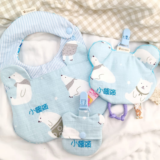 可繡名字 可單購。北極熊。手工訂製3件彌月組