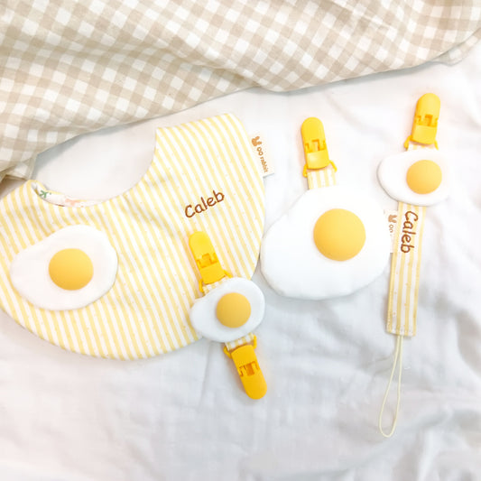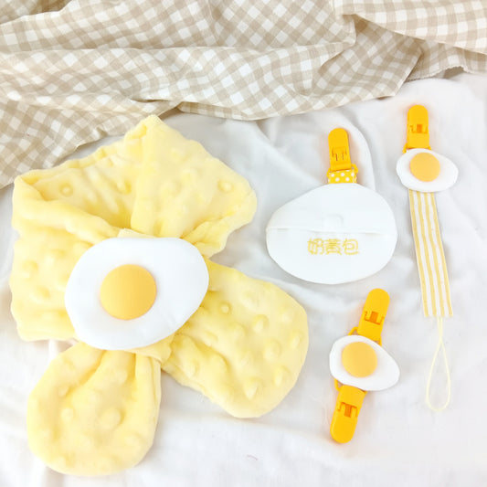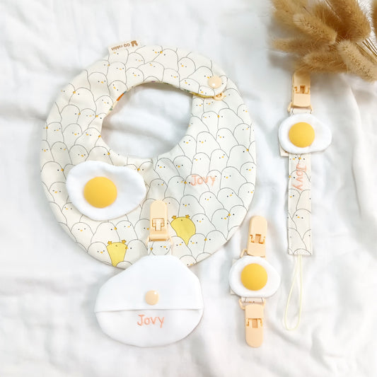 可繡名字 可單購。任性的荷包蛋。手工訂製4件彌月組