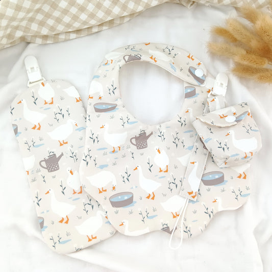 可繡名字 可單購。散步小鵝。手工訂製4件彌月組