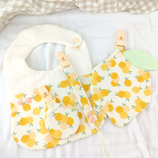 可繡名字 可單購。夏日小檸檬。手工訂製4件彌月組
