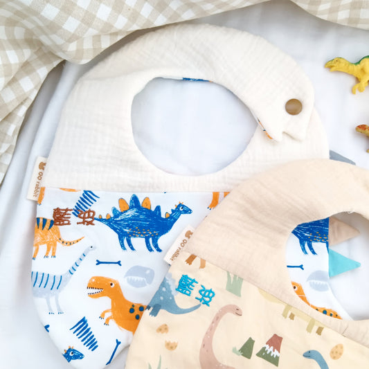 可繡名字。都是恐龍2件組。恐龍造型設計款圍兜口水巾彌月組