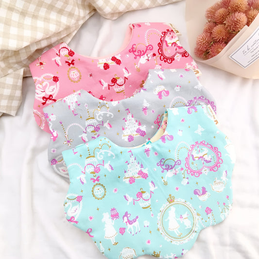 可繡名字。夢幻愛麗絲3件組。花型圍兜口水巾彌月組