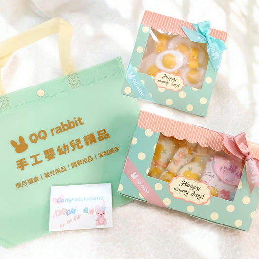 可繡名字 可單購。兔兔花園。手工訂製3件彌月組