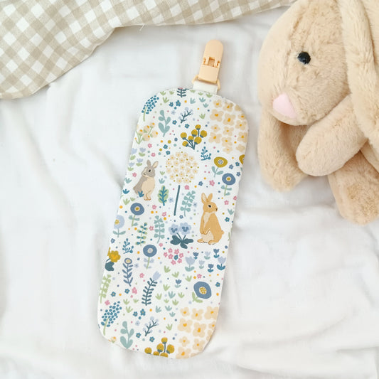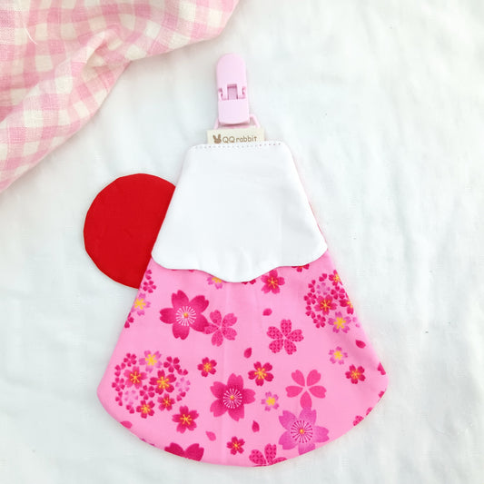 花花粉紅兔-2款可選。雙面純棉手帕 / 附夾手帕 (可繡名字)