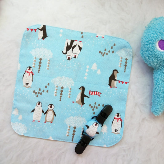 企鵝家族。企鵝造型雙面純棉手帕 / 附夾手帕 (可繡名字)