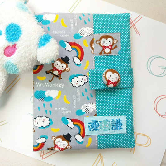 免費繡名字。猴子先生。寶寶手冊布書衣