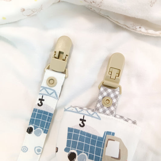 灰藍工程車。奶嘴袋+奶嘴鏈 (可繡名字)