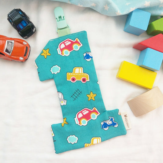 Number One-2款可選。數字1造型雙面純棉手帕 / 附夾手帕 (可繡名字)