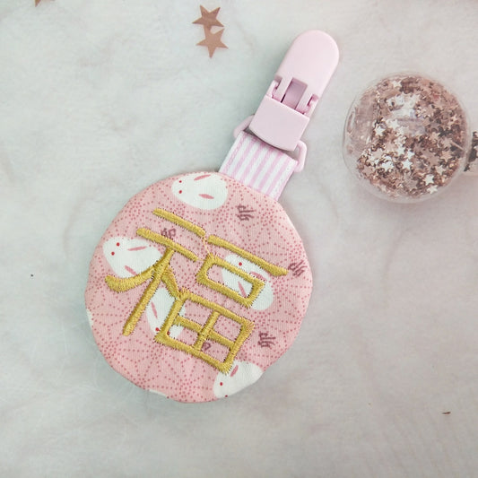 平安春霞白兔-粉紅。御守款平安符袋 (可繡名字)