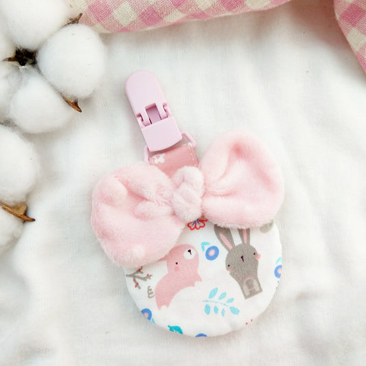 灰粉兔兔。奶嘴袋+奶嘴鏈 (可繡名字)