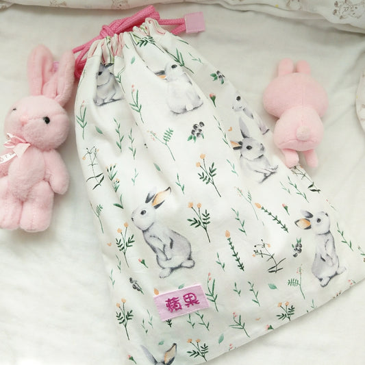 免費繡名字。都是兔兔-3款可選。束口袋 尿布袋 衣物袋