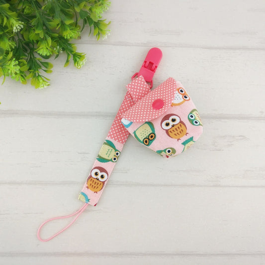 萌萌貓頭鷹。奶嘴袋+奶嘴鏈 (可繡名字)