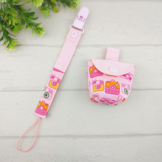 可愛照相機。奶嘴袋+奶嘴鏈 (可繡名字)