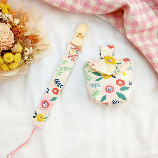繽紛小花-2色可選。奶嘴袋+奶嘴鏈 (可繡名字)
