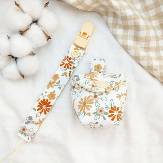 秋日小雛菊。奶嘴袋+奶嘴鏈 (可繡名字)