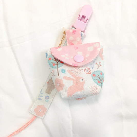 灰粉兔兔。奶嘴袋+奶嘴鏈 (可繡名字)