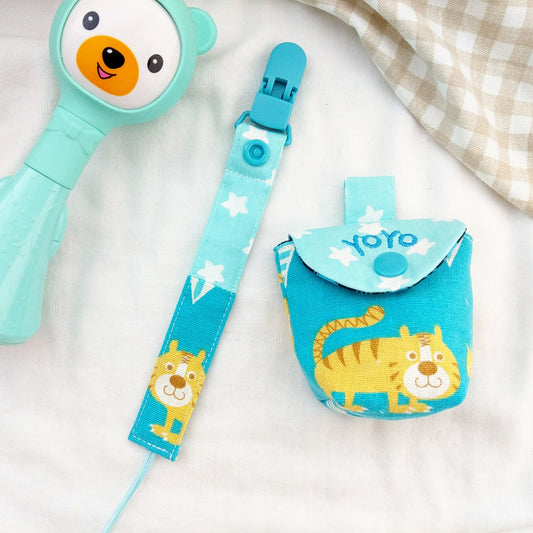 兩隻老虎。奶嘴袋+奶嘴鏈 (可繡名字)