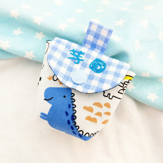 Q版恐龍。奶嘴袋+奶嘴鏈 (可繡名字)