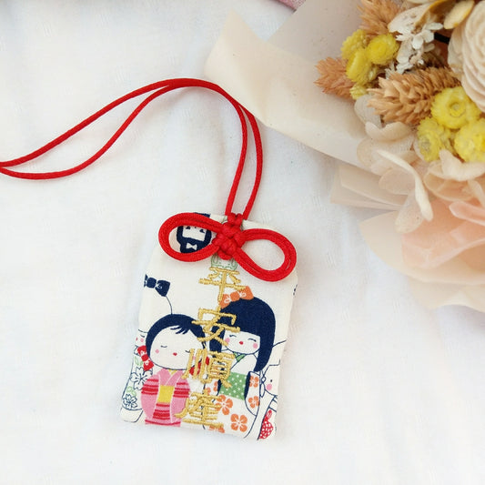 【可客製祝福】和服娃娃-米白。御守款平安符袋 (可繡名字)