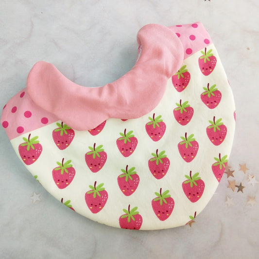 雙面草莓圖案。波浪領莓型圍兜 (可繡名字)