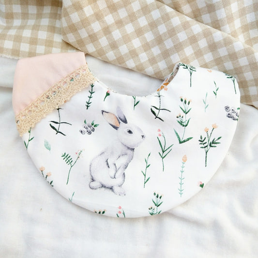 香草灰兔。不對稱拼接蕾絲圍兜口水巾 (可繡名字)