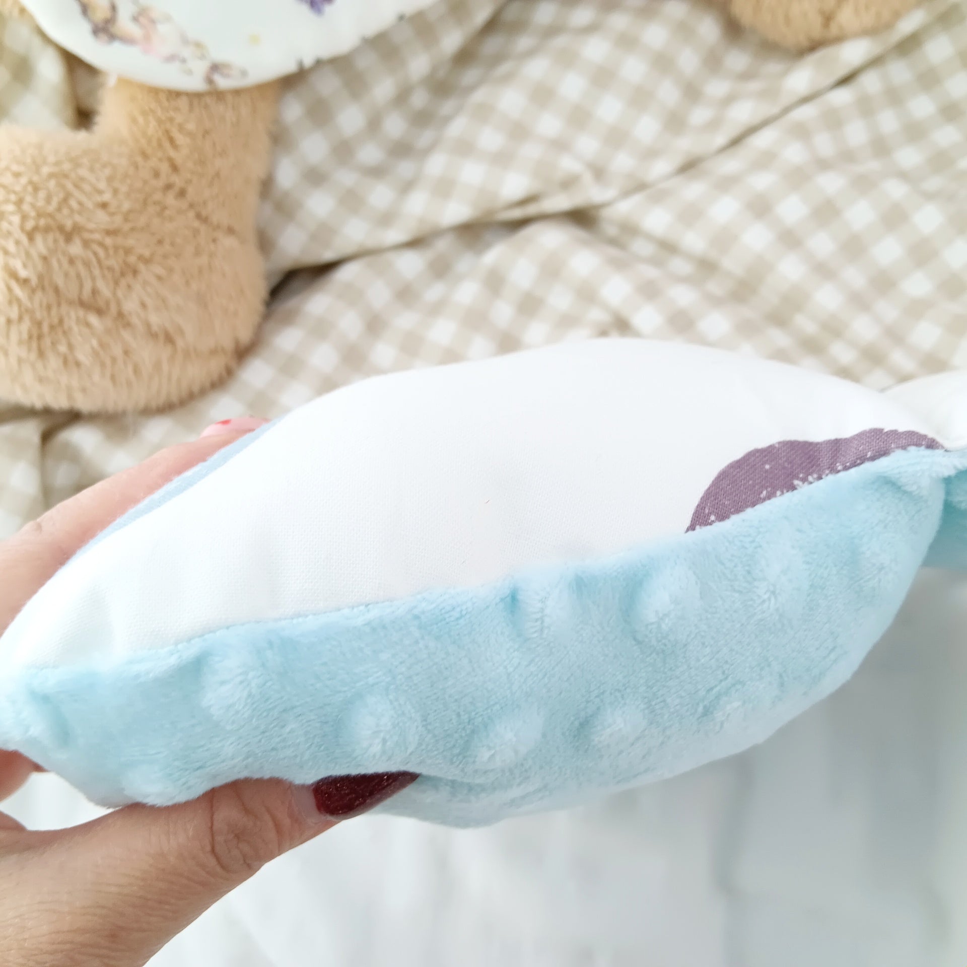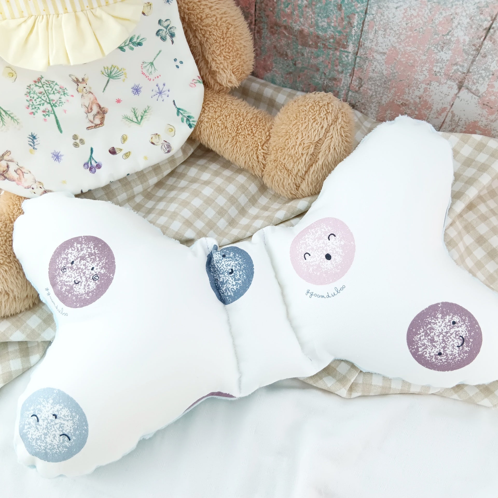 ❤正面為日韓純棉布;背面使用韓國製豆豆布,內部填充可水洗QQ棉花