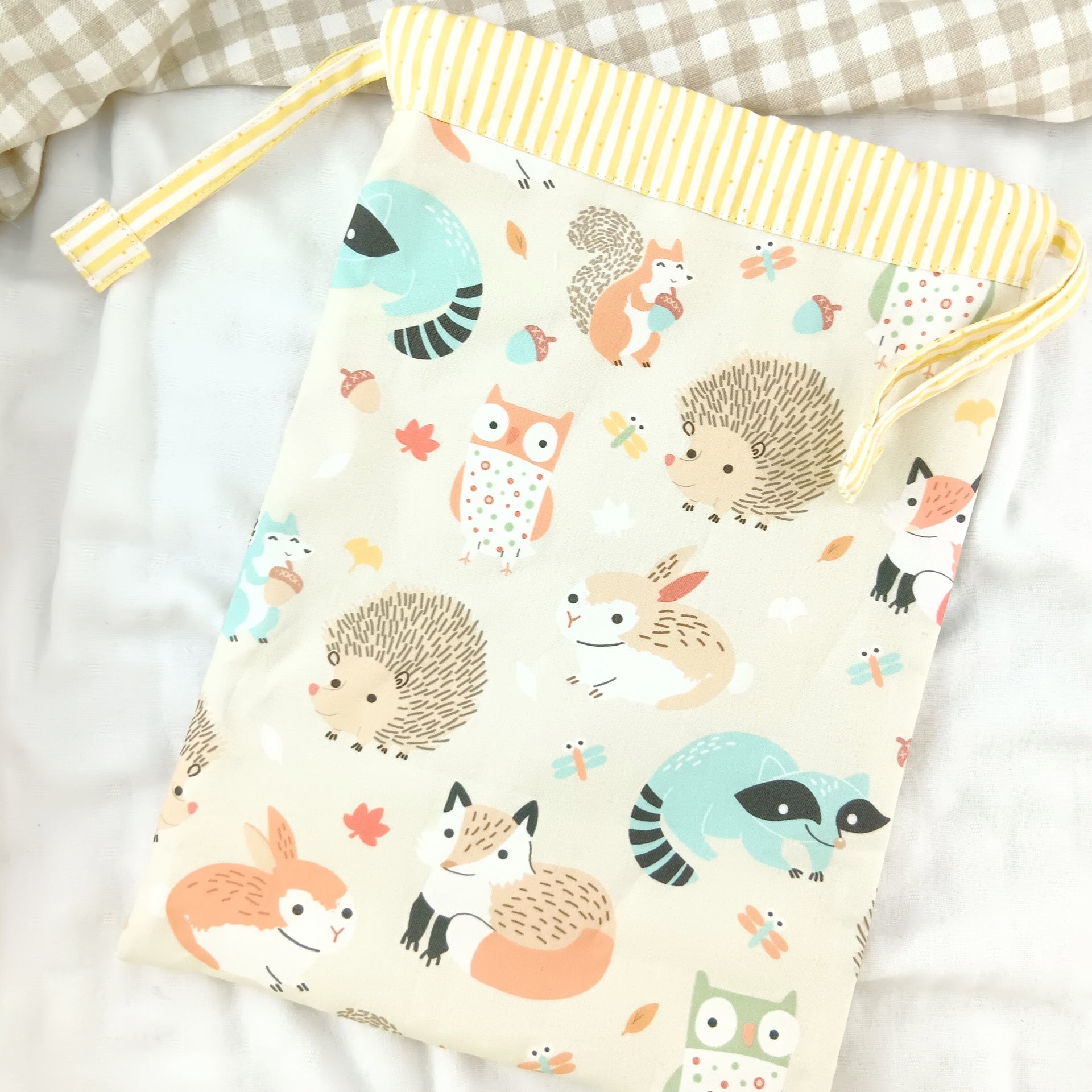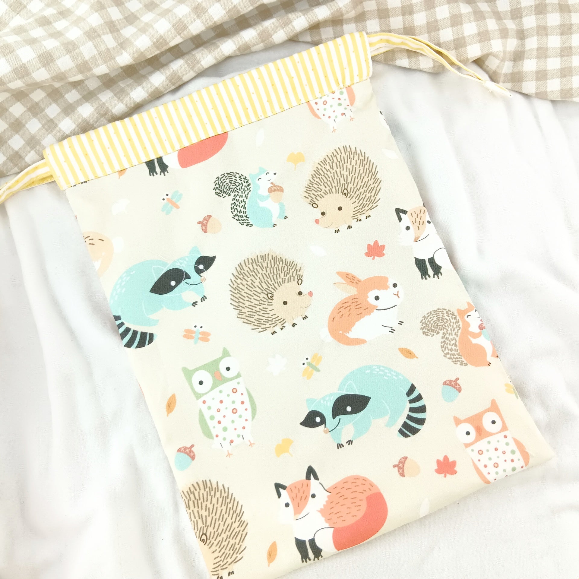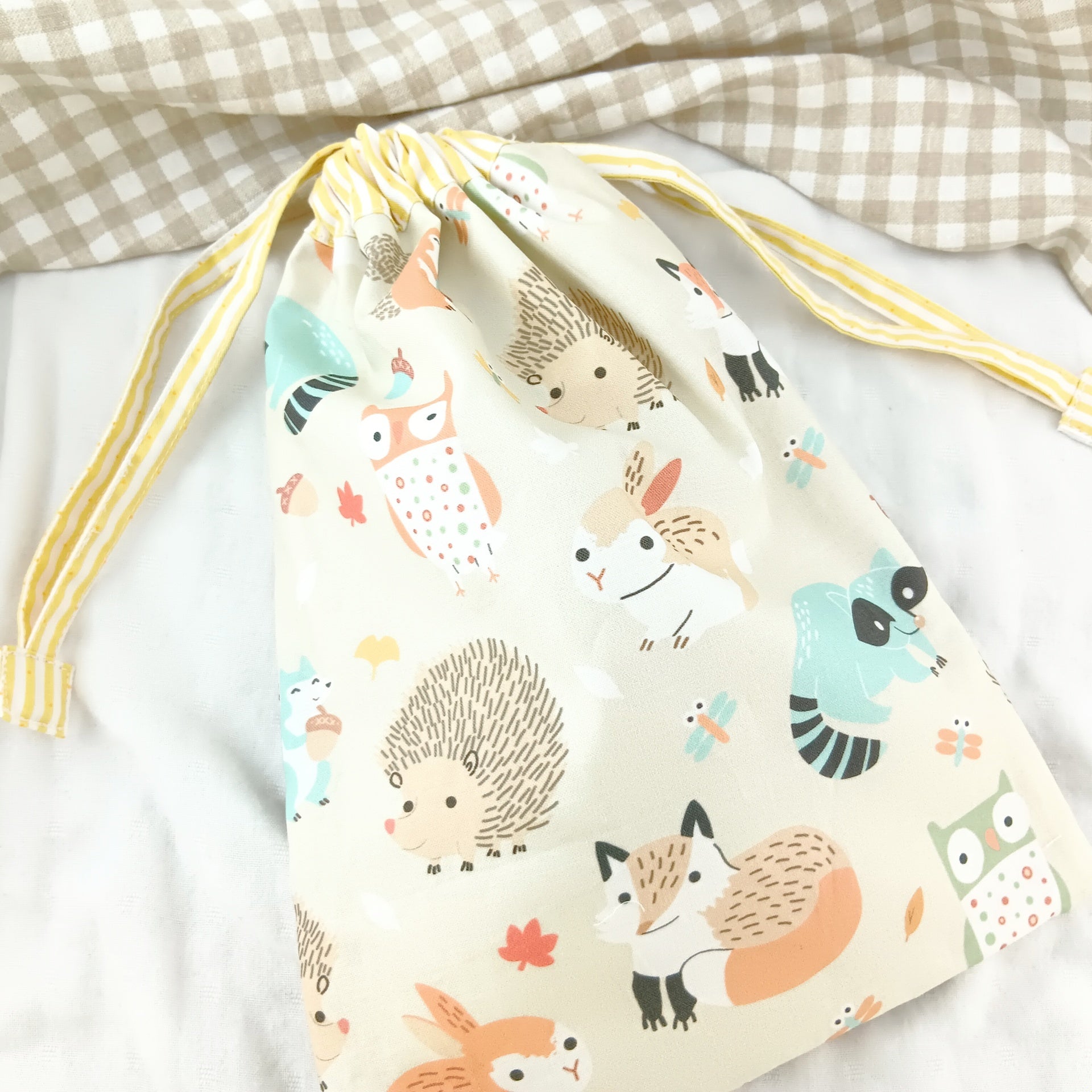 附姓名吊牌。毛茸茸動物。束口袋 尿布袋 衣物袋