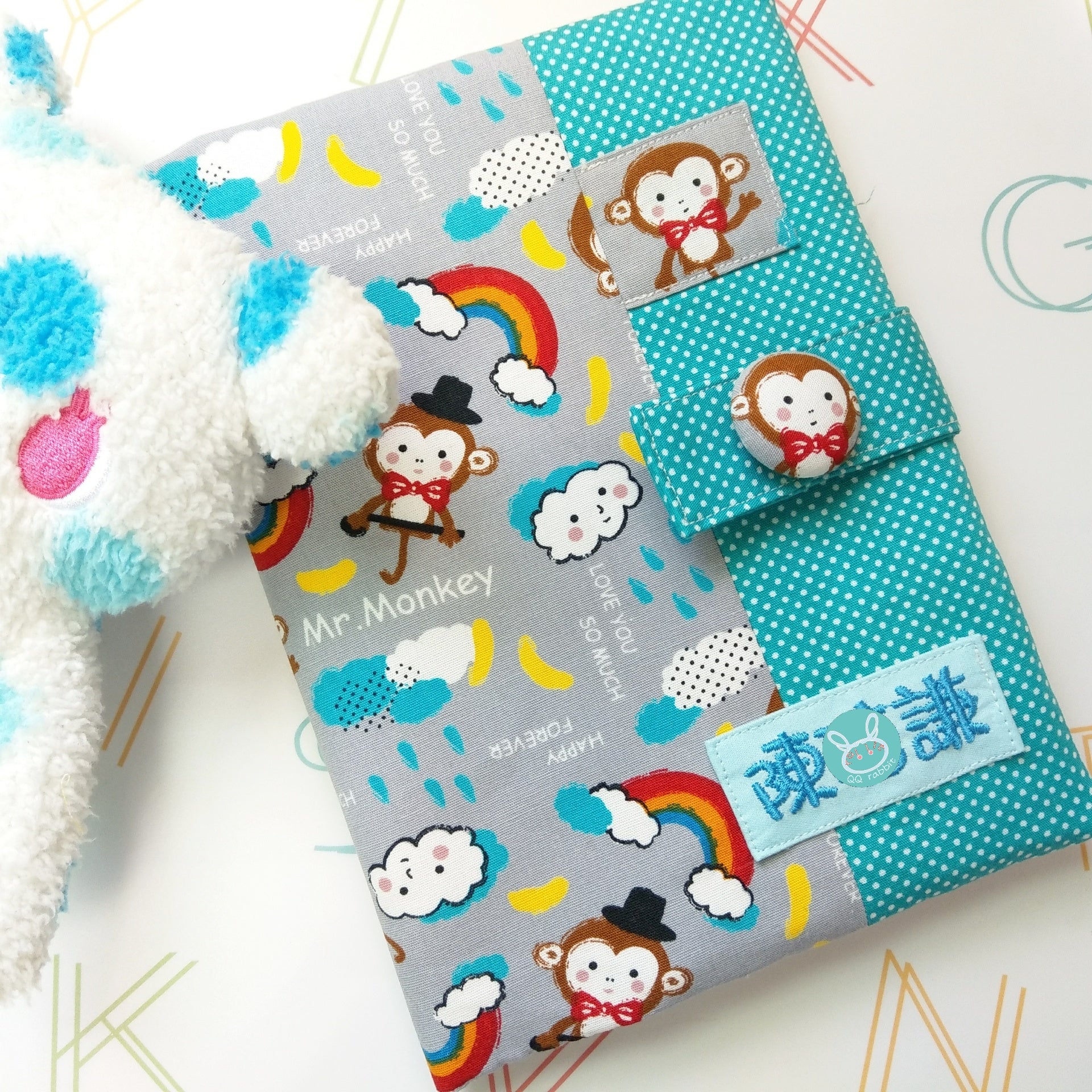 免費繡名字。猴子先生。寶寶手冊布書衣
