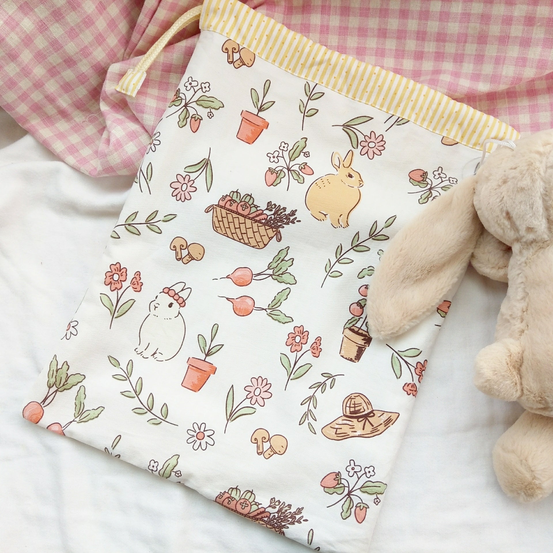 免費繡名字。都是兔兔-3款可選。束口袋 尿布袋 衣物袋