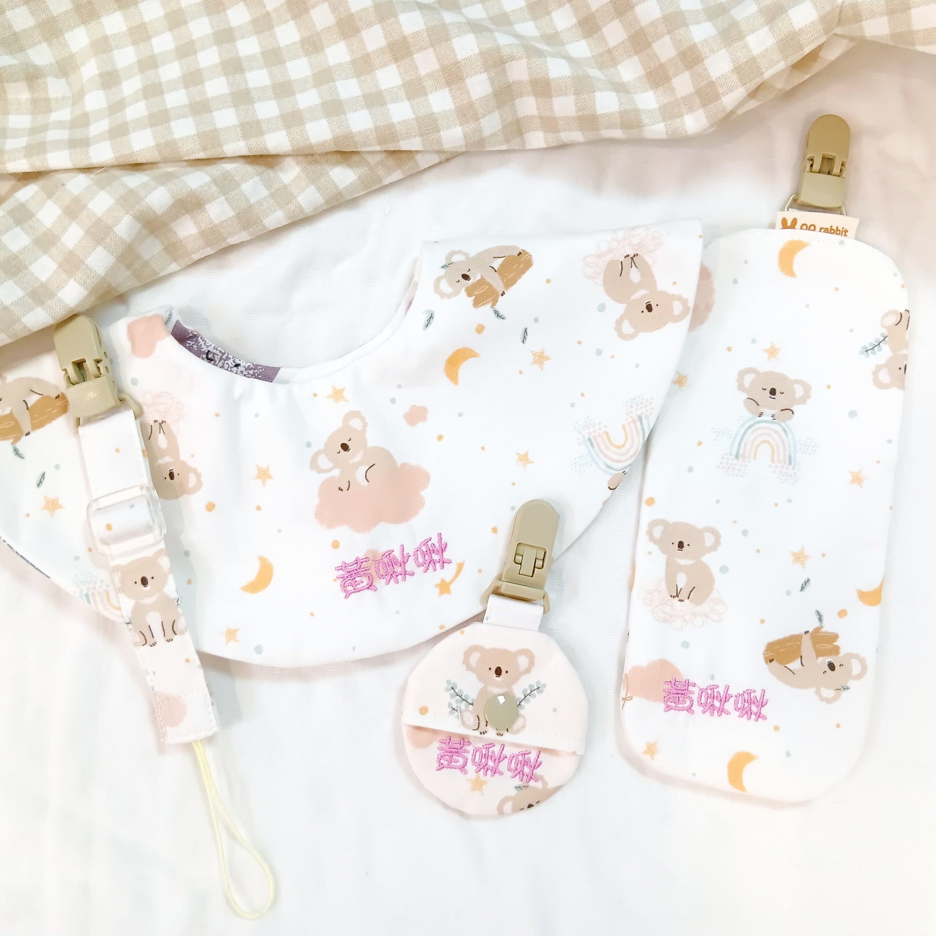 可繡名字 可單購。星月無尾熊。手工訂製3件 4件彌月組