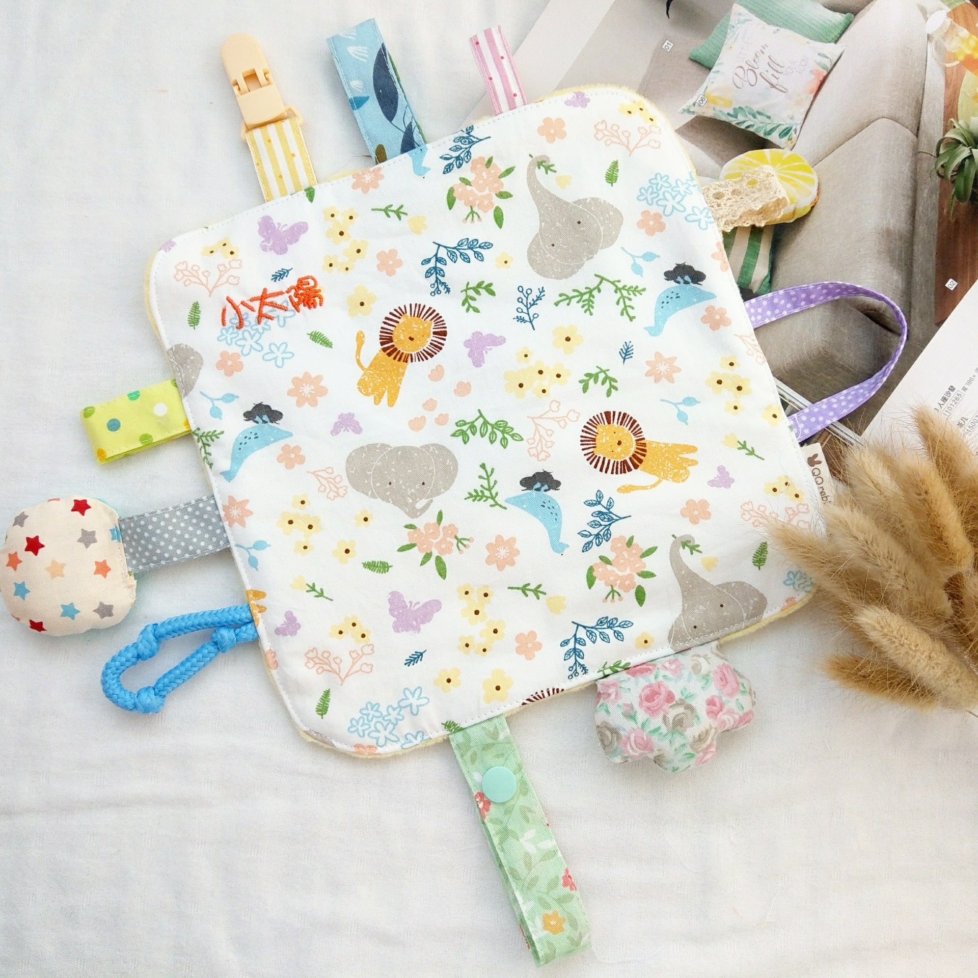 - 正面的圖案布和色彩豐富的棉布標籤吸引寶寶目光