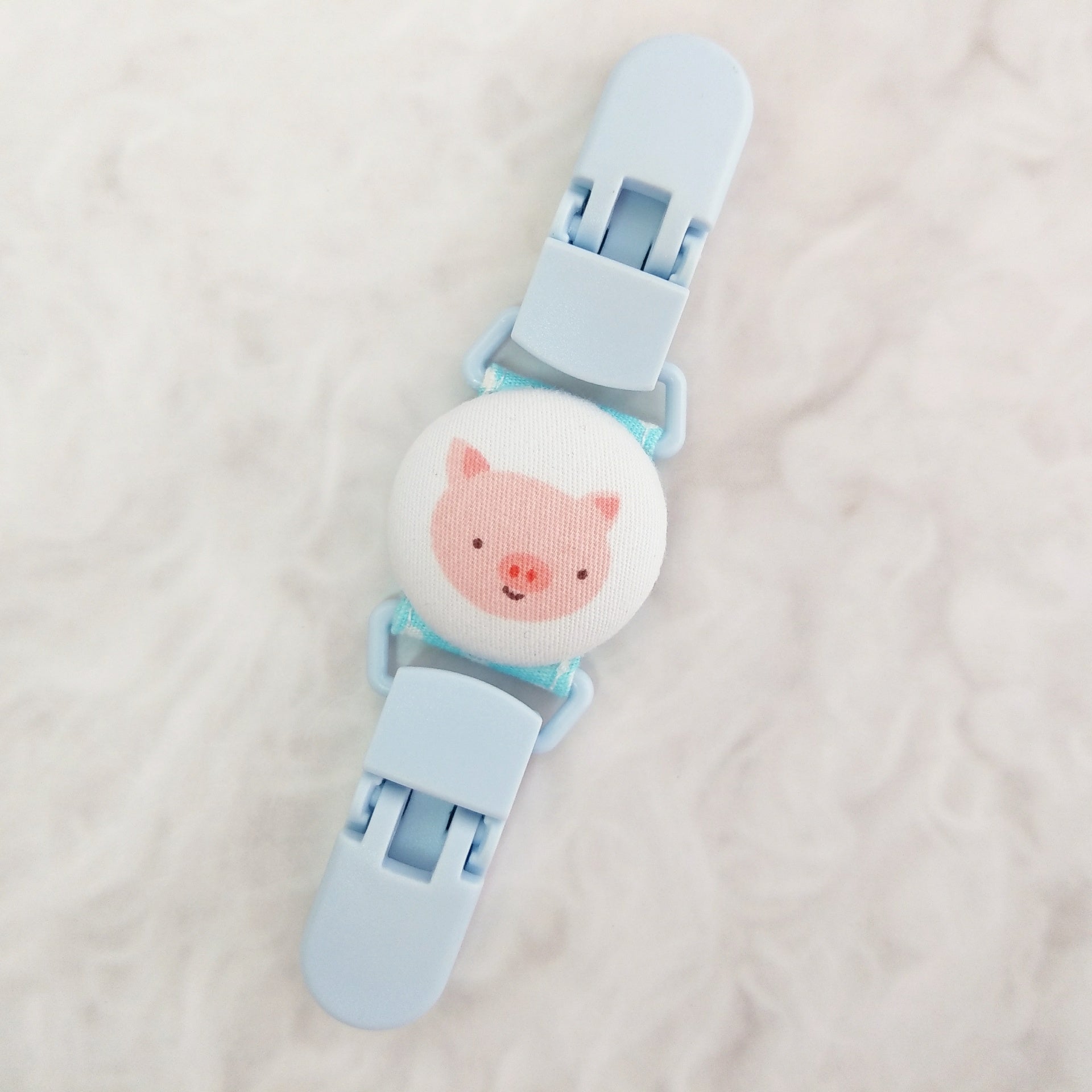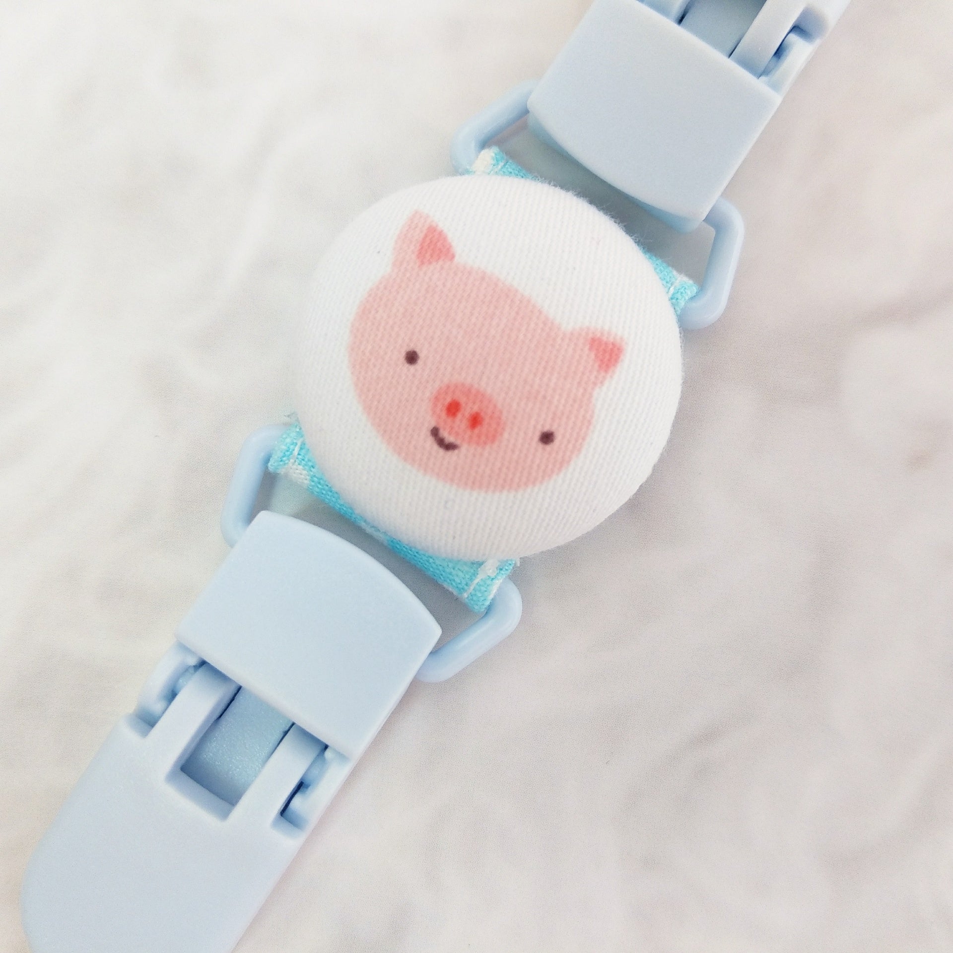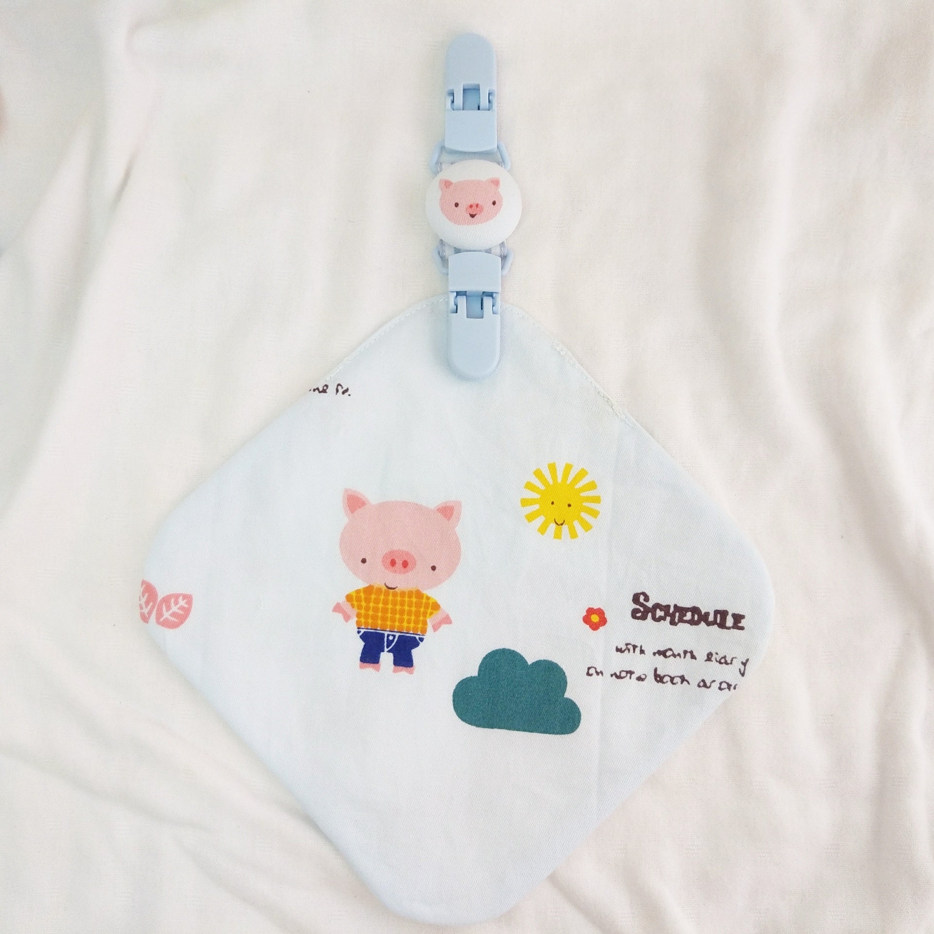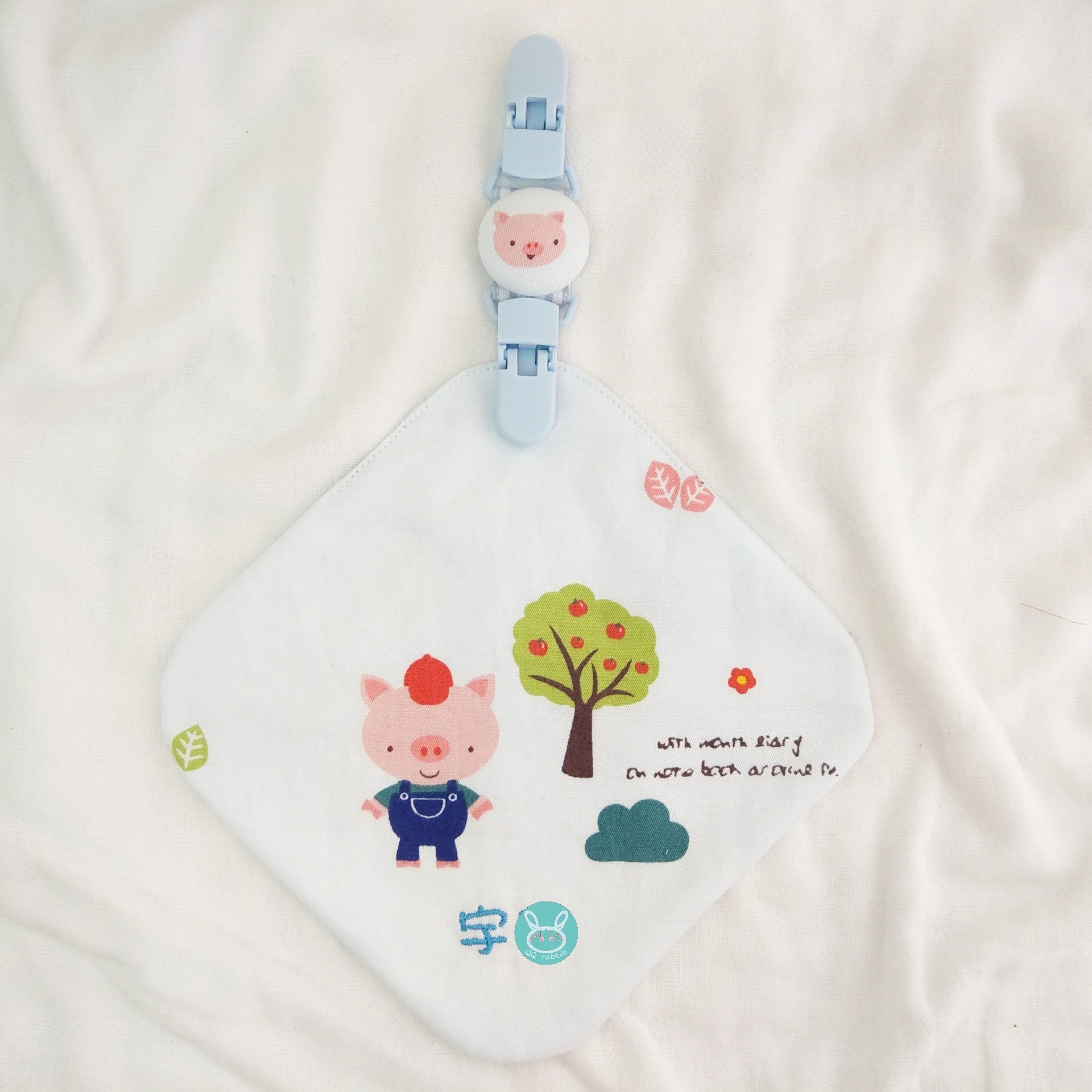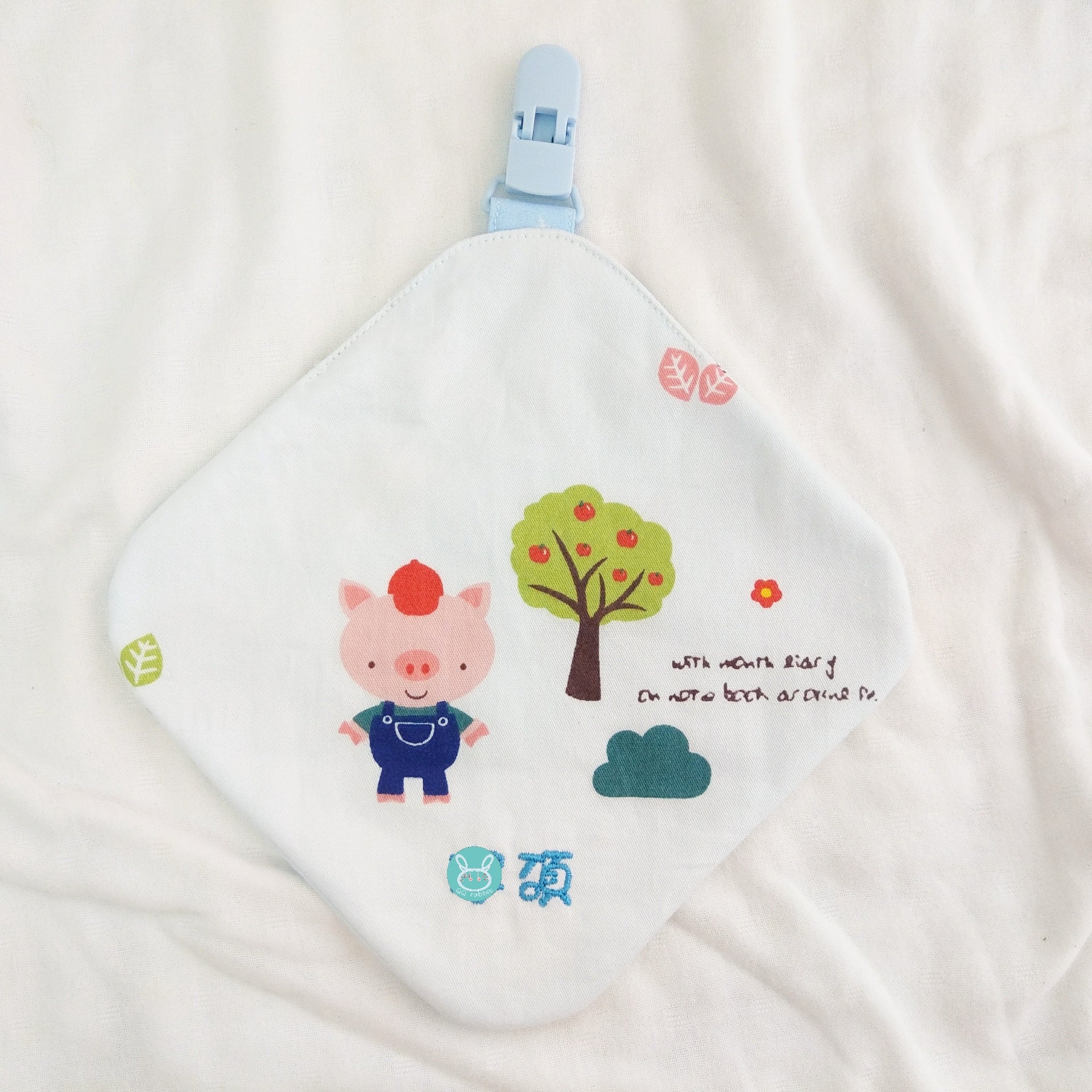 吊帶褲小豬。雙面純棉手帕 / 附夾手帕 (可繡名字)
