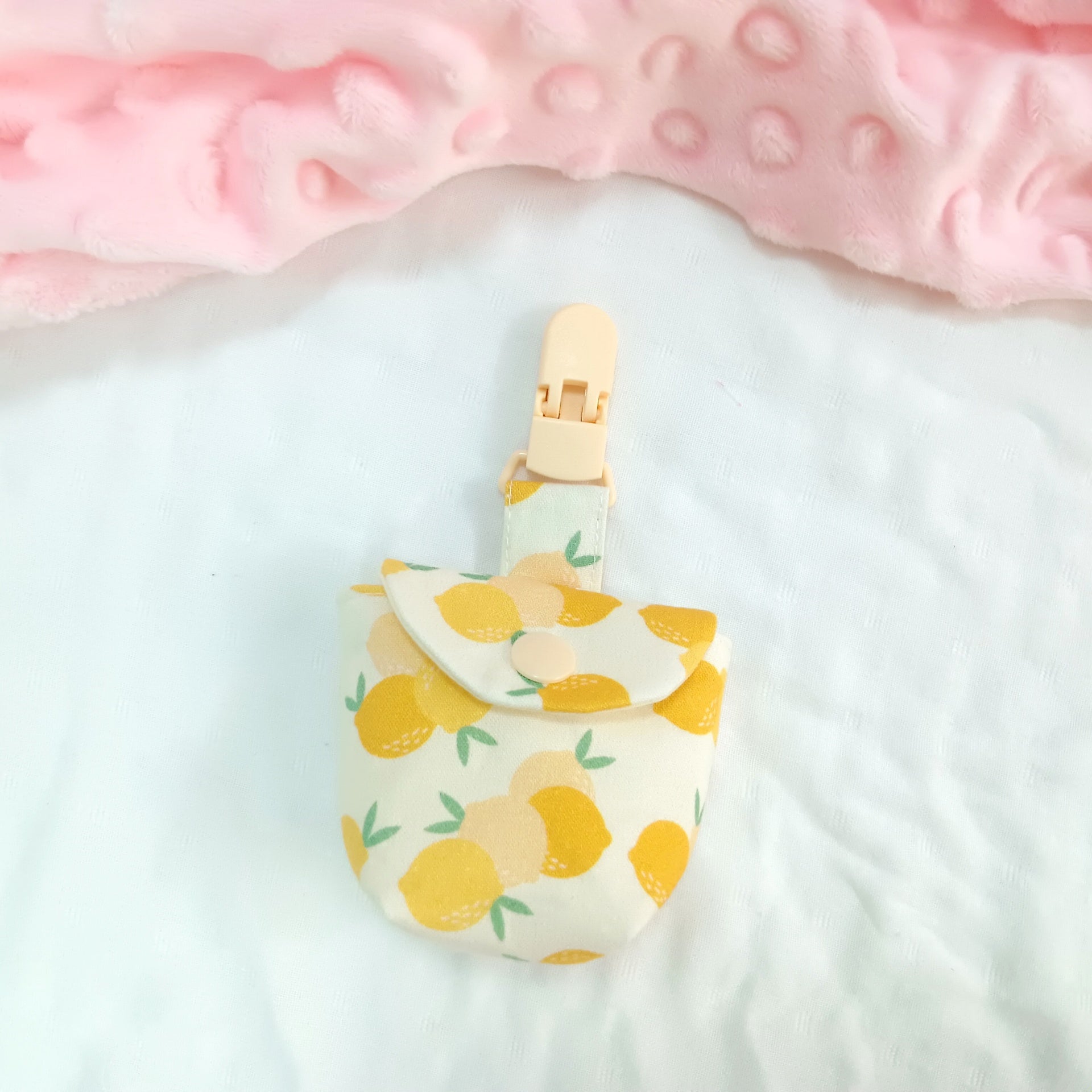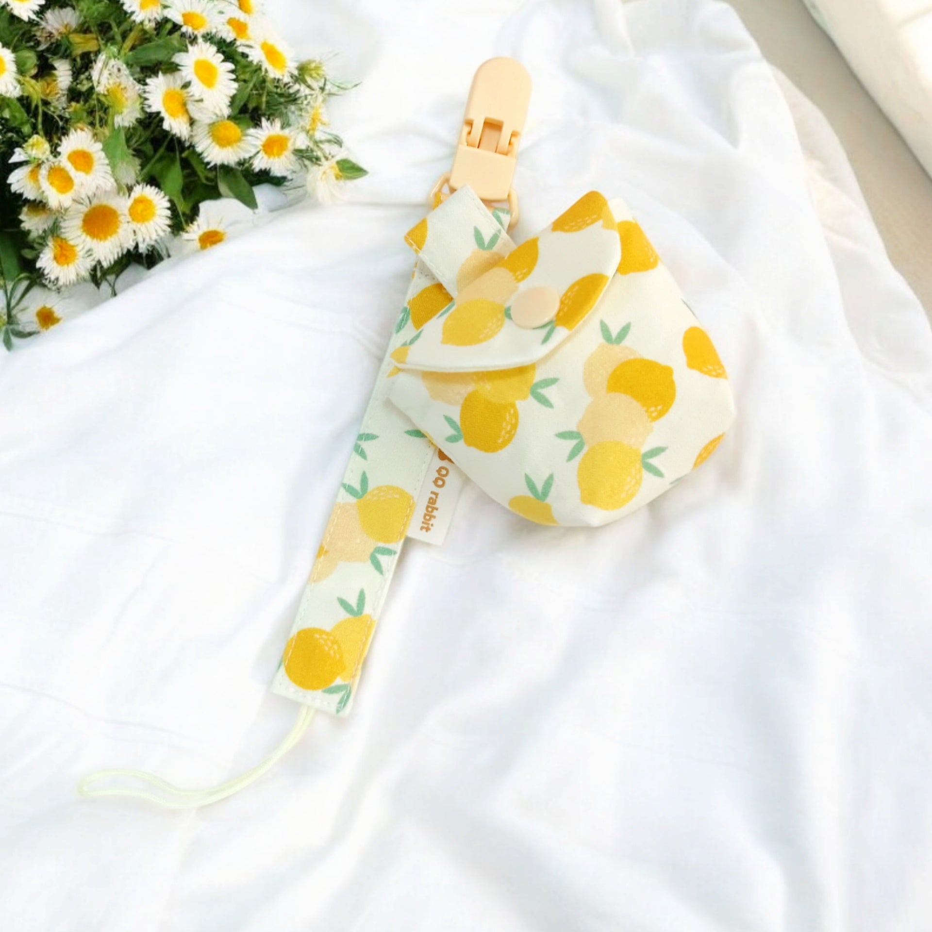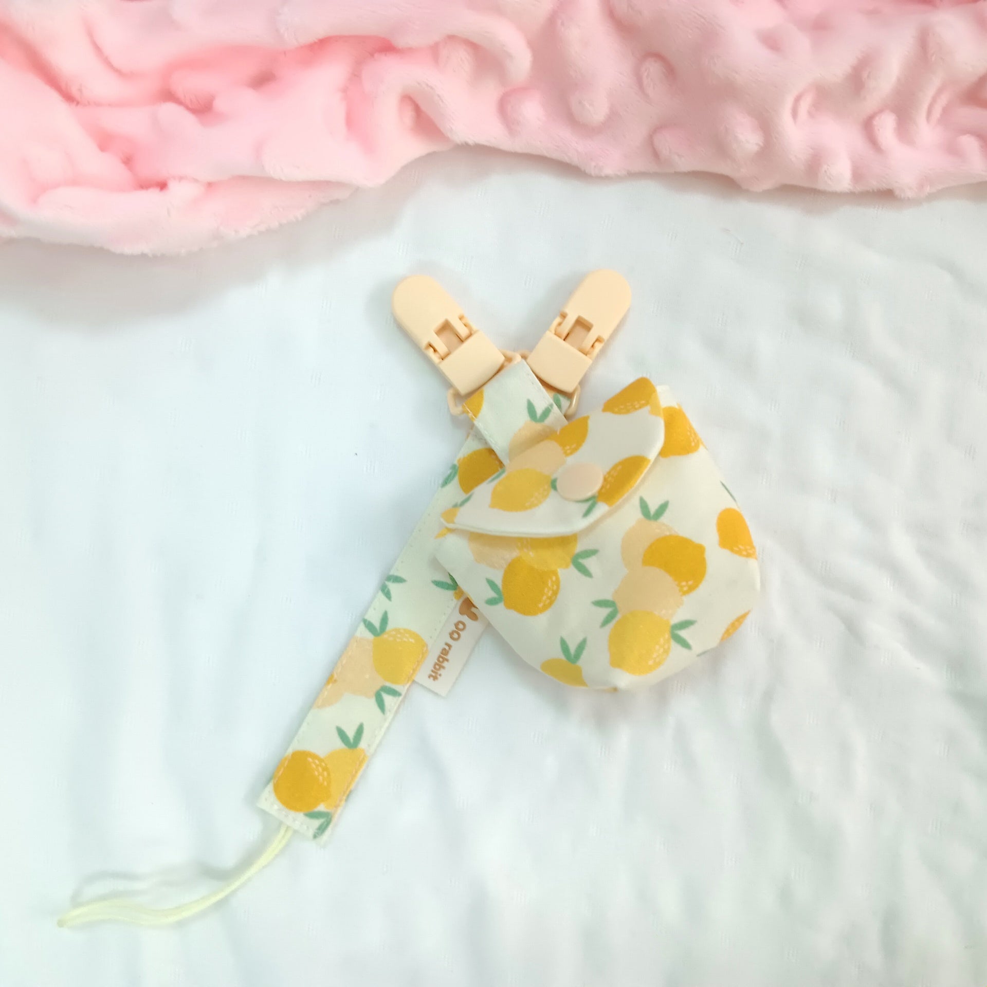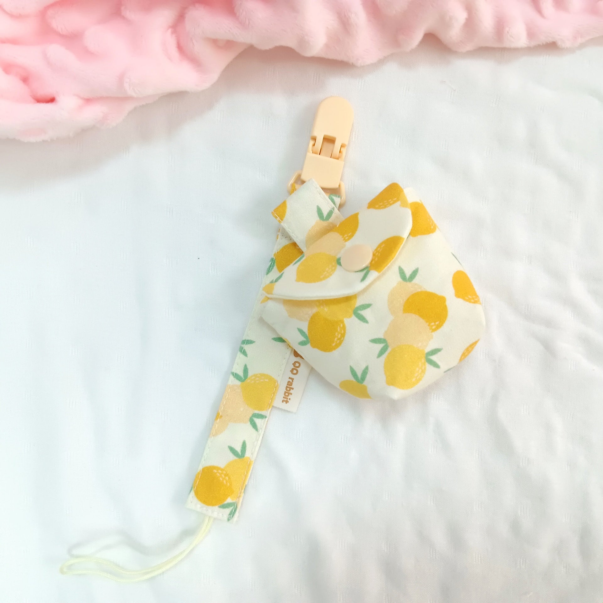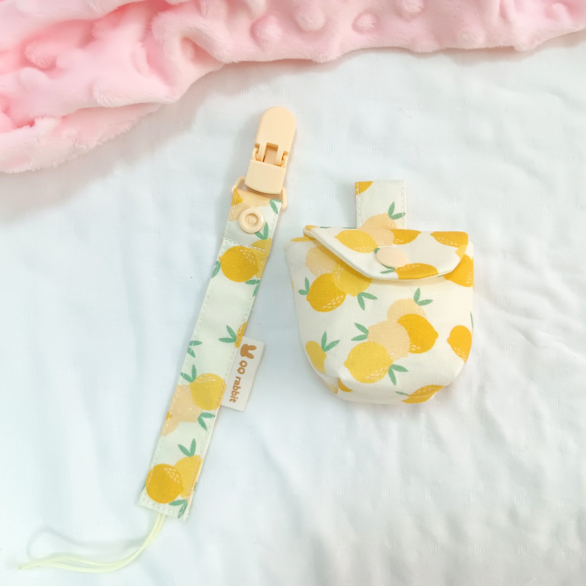 夏日小檸檬。奶嘴袋+奶嘴鏈 (可繡名字)