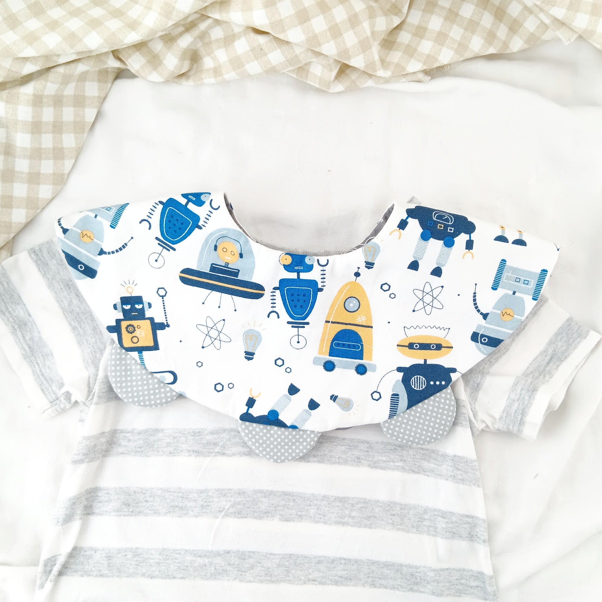 太空機器人。幽浮 飛碟 UFO 造型圍兜 (可繡名字)