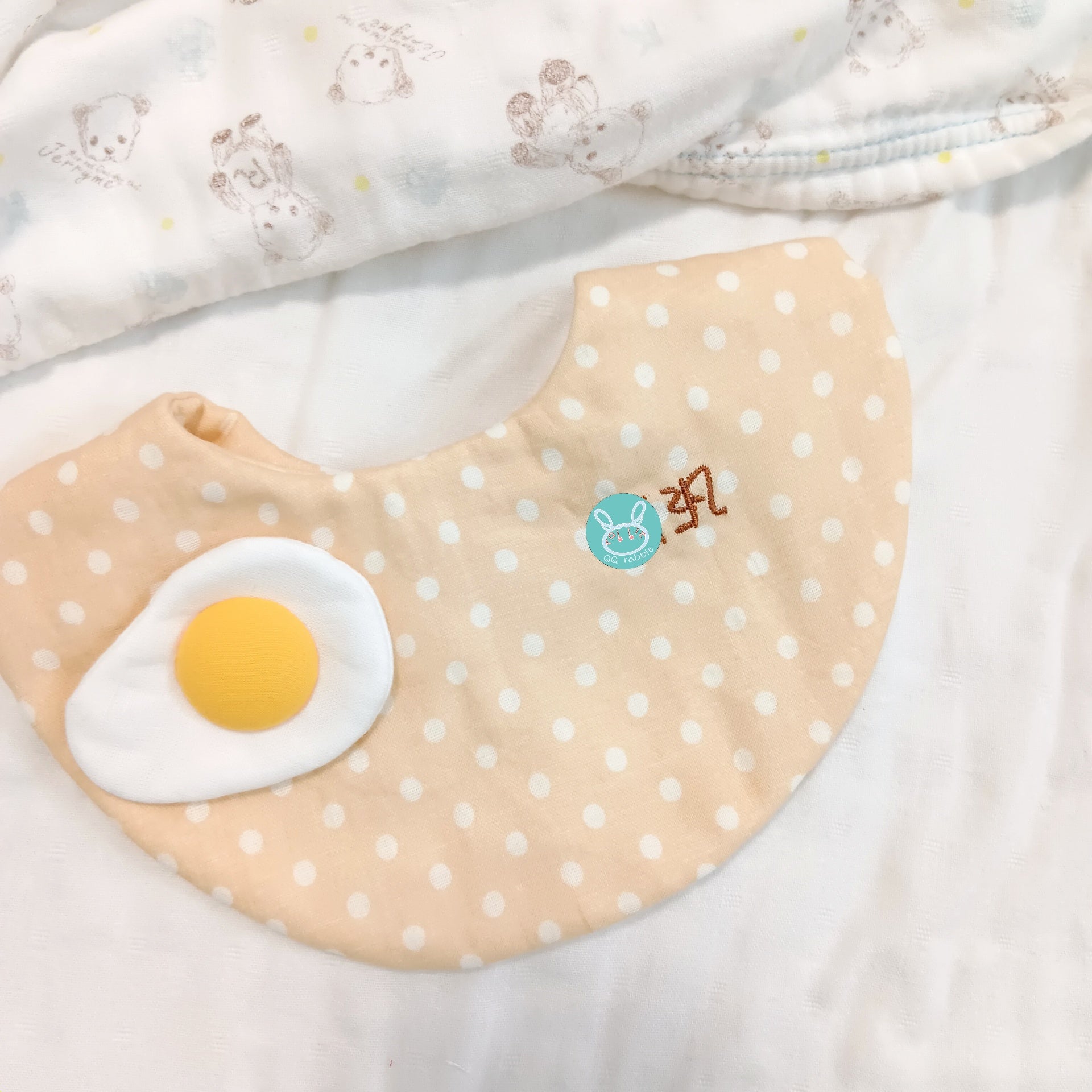 奶茶珍珠。立體荷包蛋造型圍兜 (可繡名字)