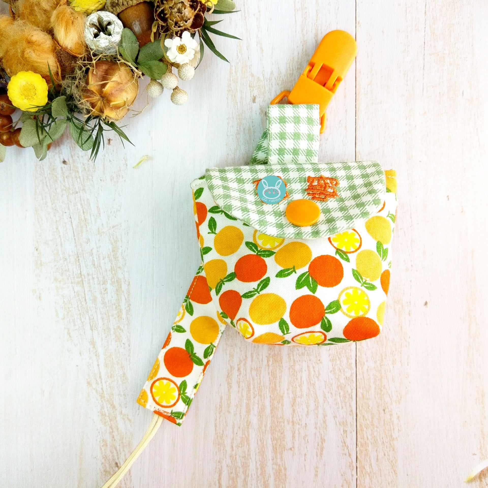 小橘子。奶嘴袋+奶嘴鏈 (可繡名字)