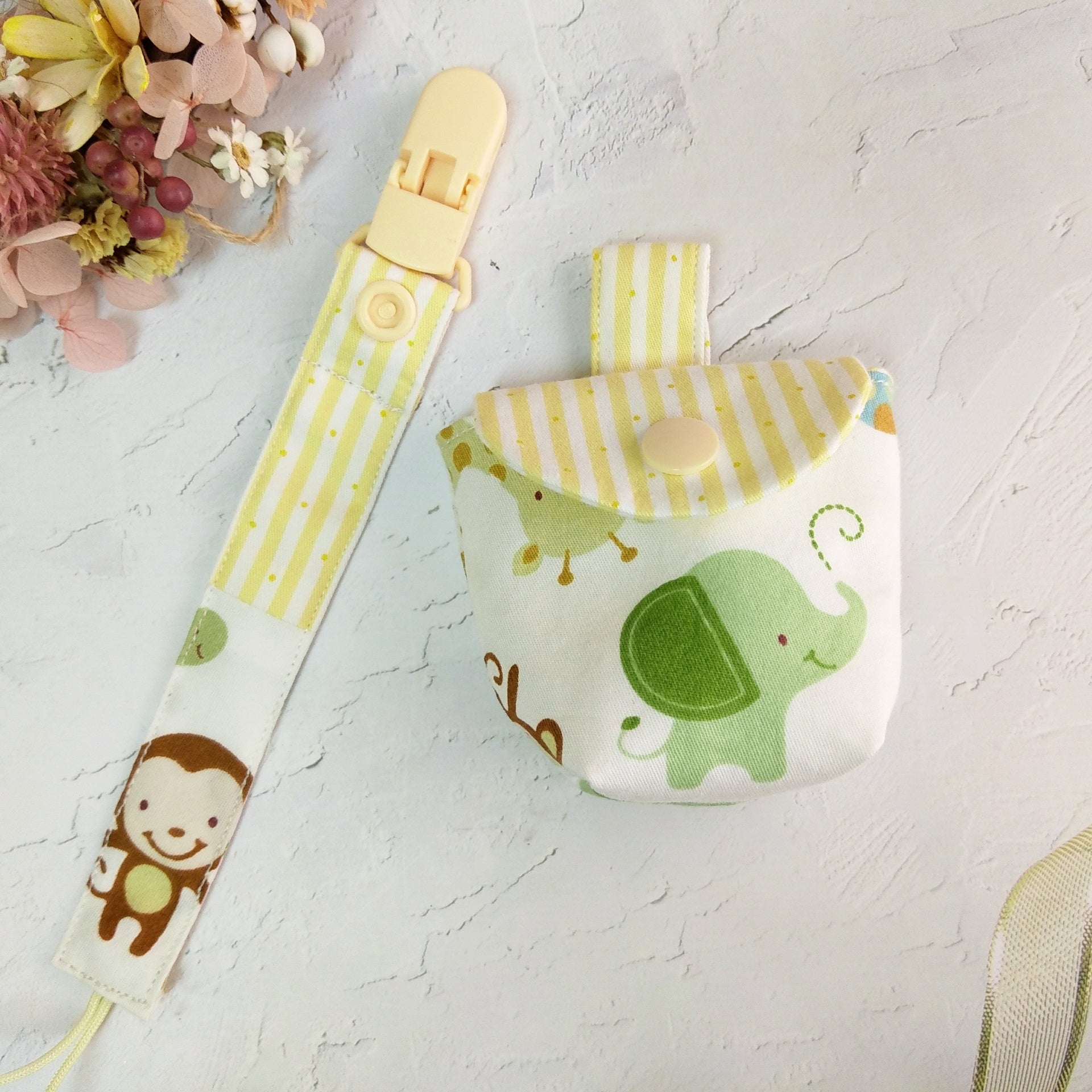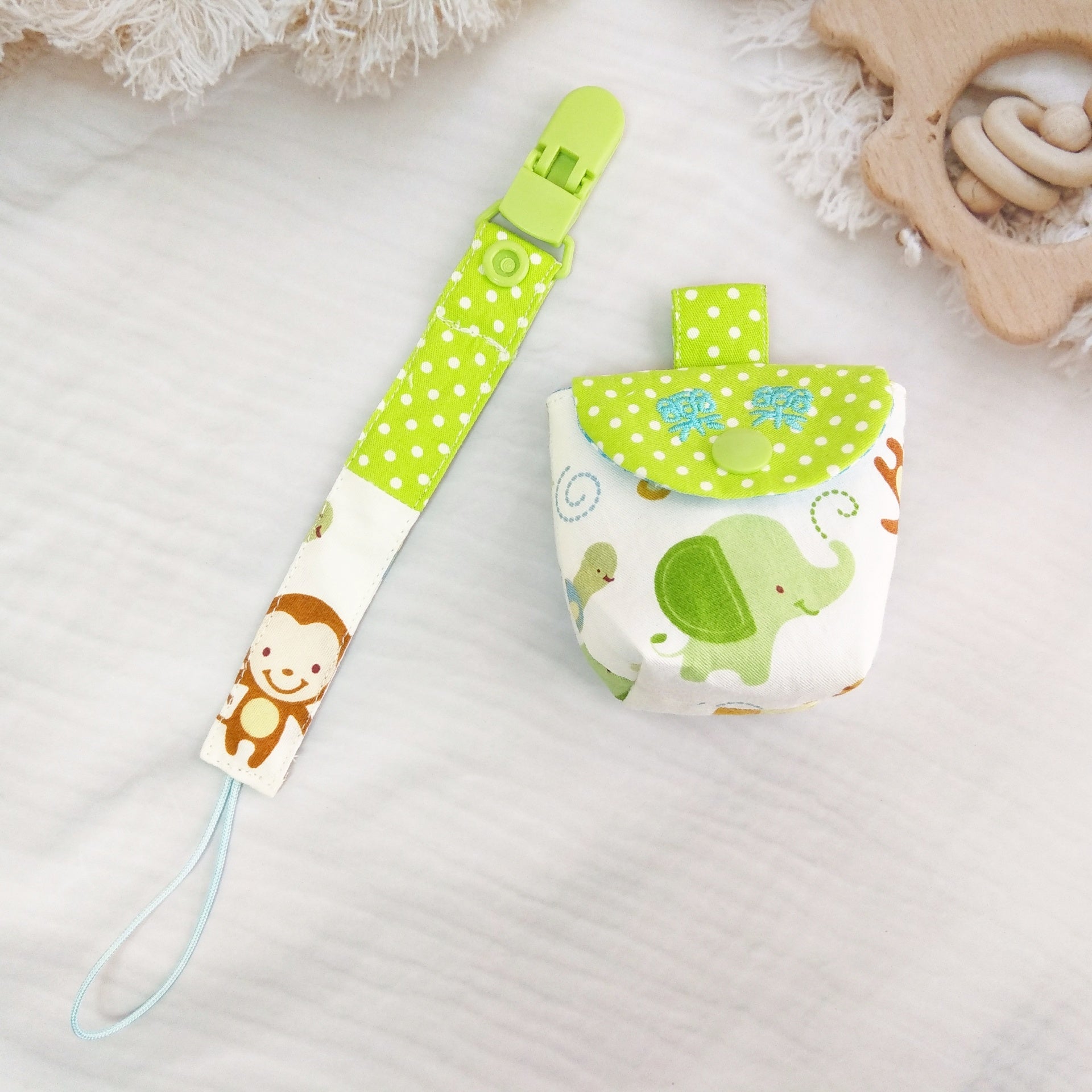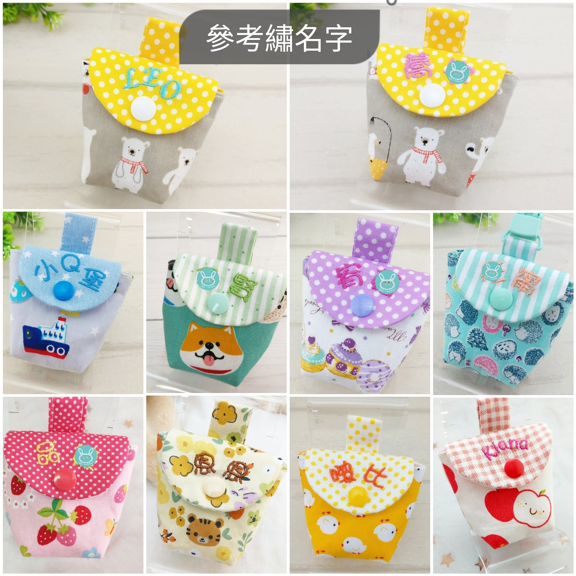 森林好朋友-2色可選。奶嘴袋+奶嘴鏈 (可繡名字)