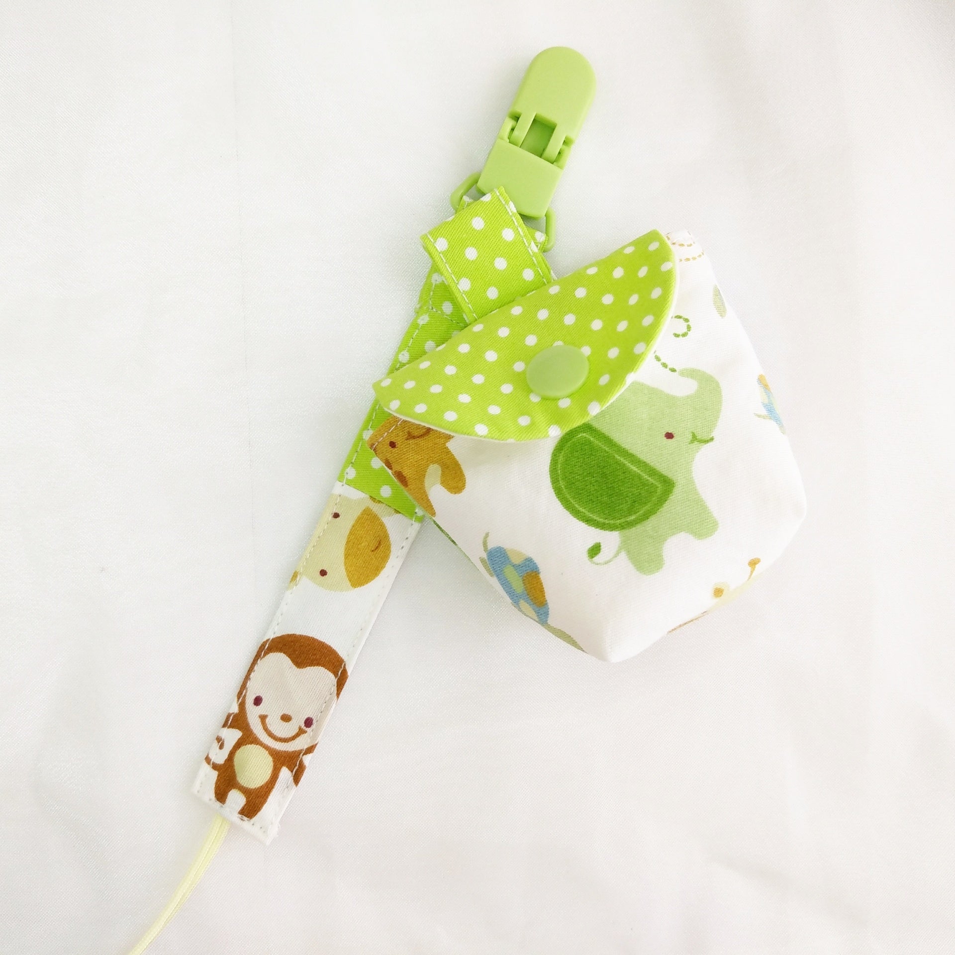 ❤要使用奶嘴時,只需將奶嘴鏈夾在寶寶身上,袋子可以拆下來避免寶寶啃咬
