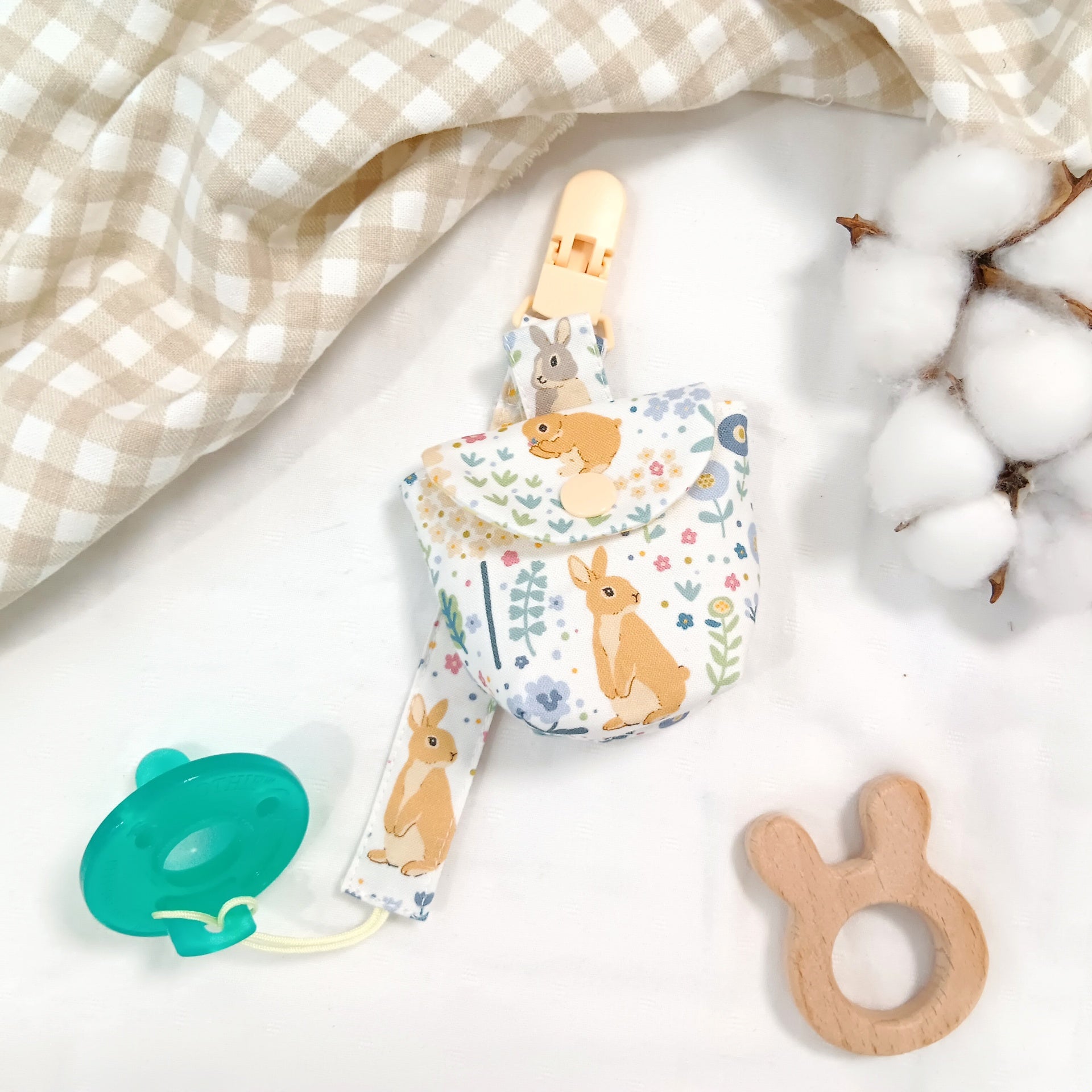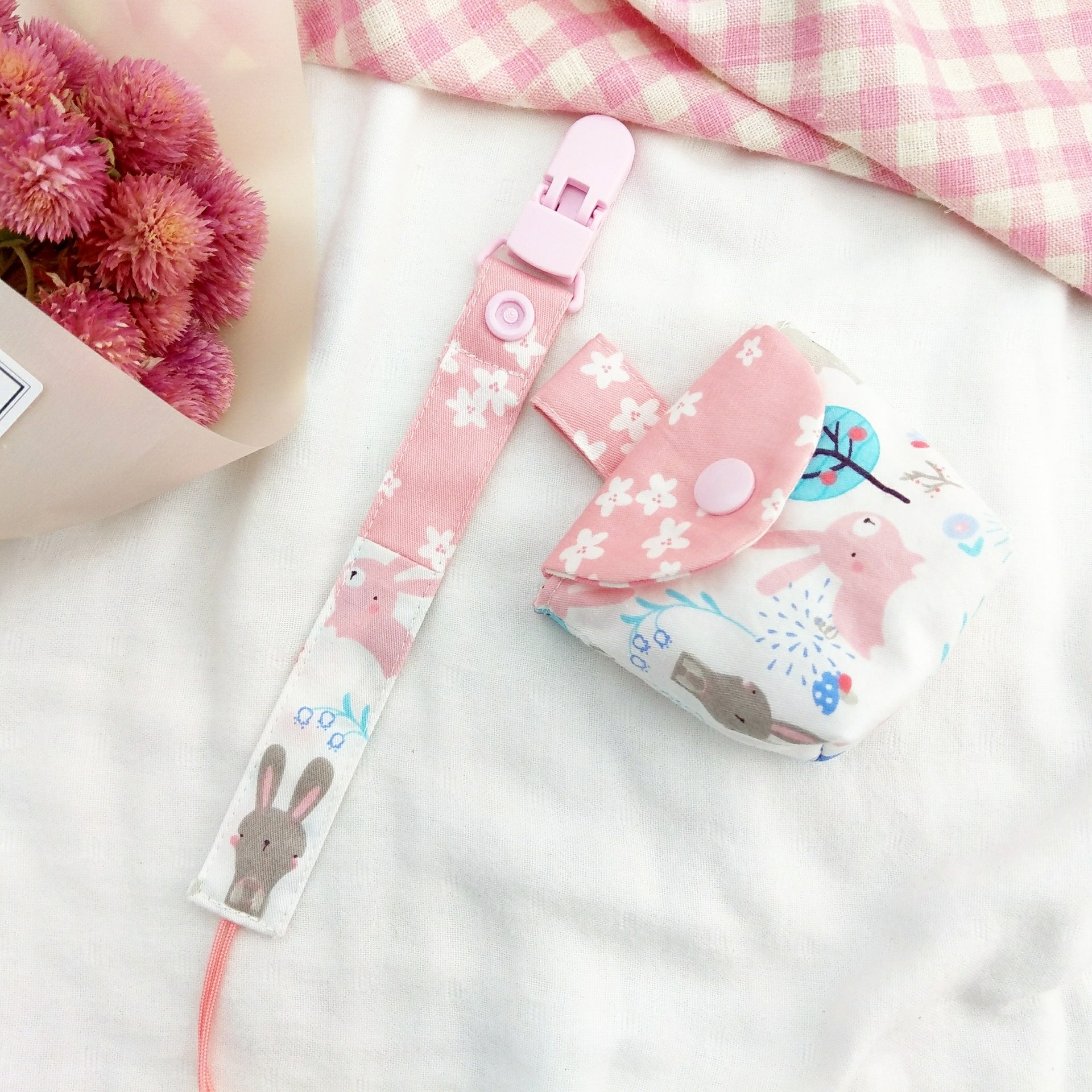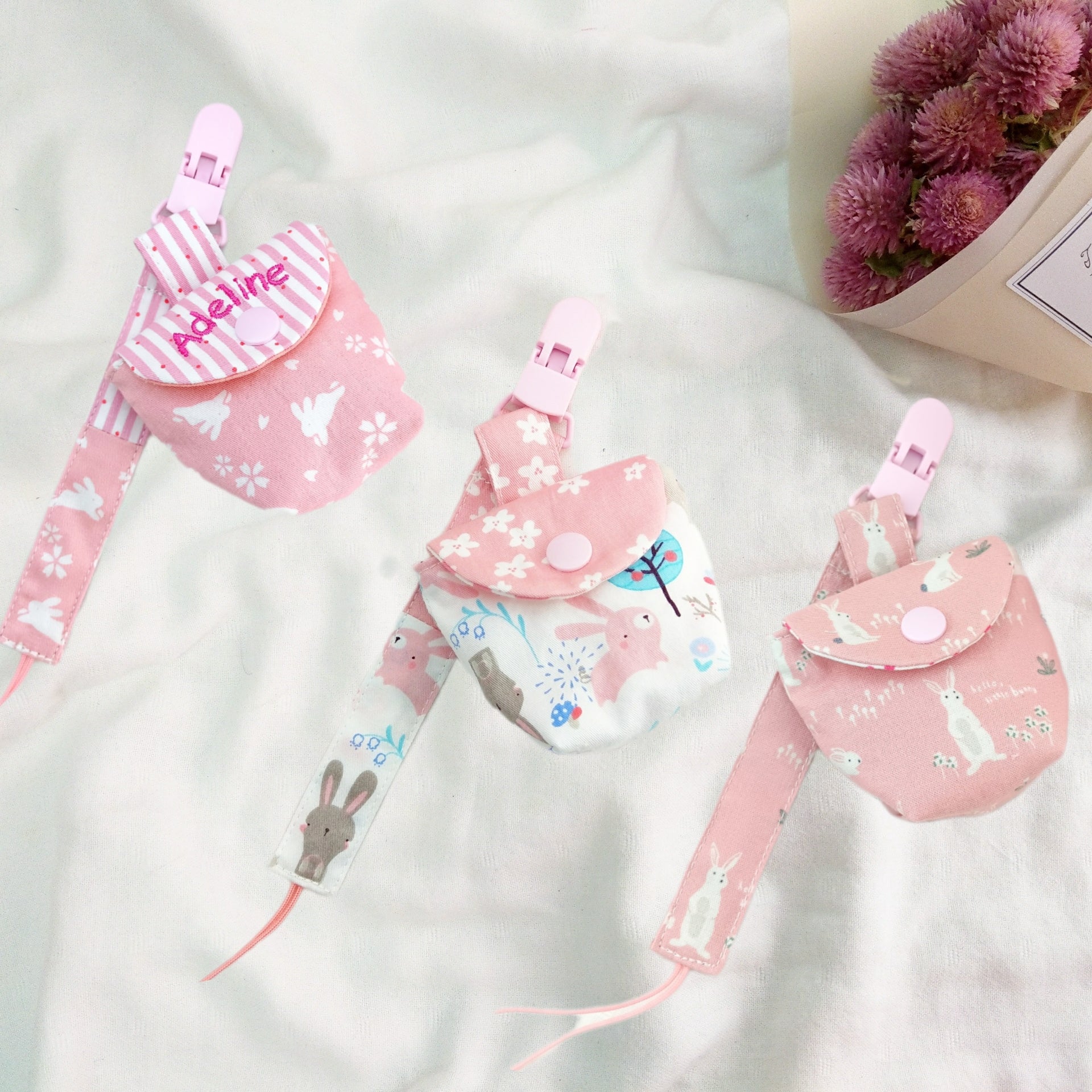 都是兔兔-5款可選。奶嘴袋+奶嘴鏈 (可繡名字)