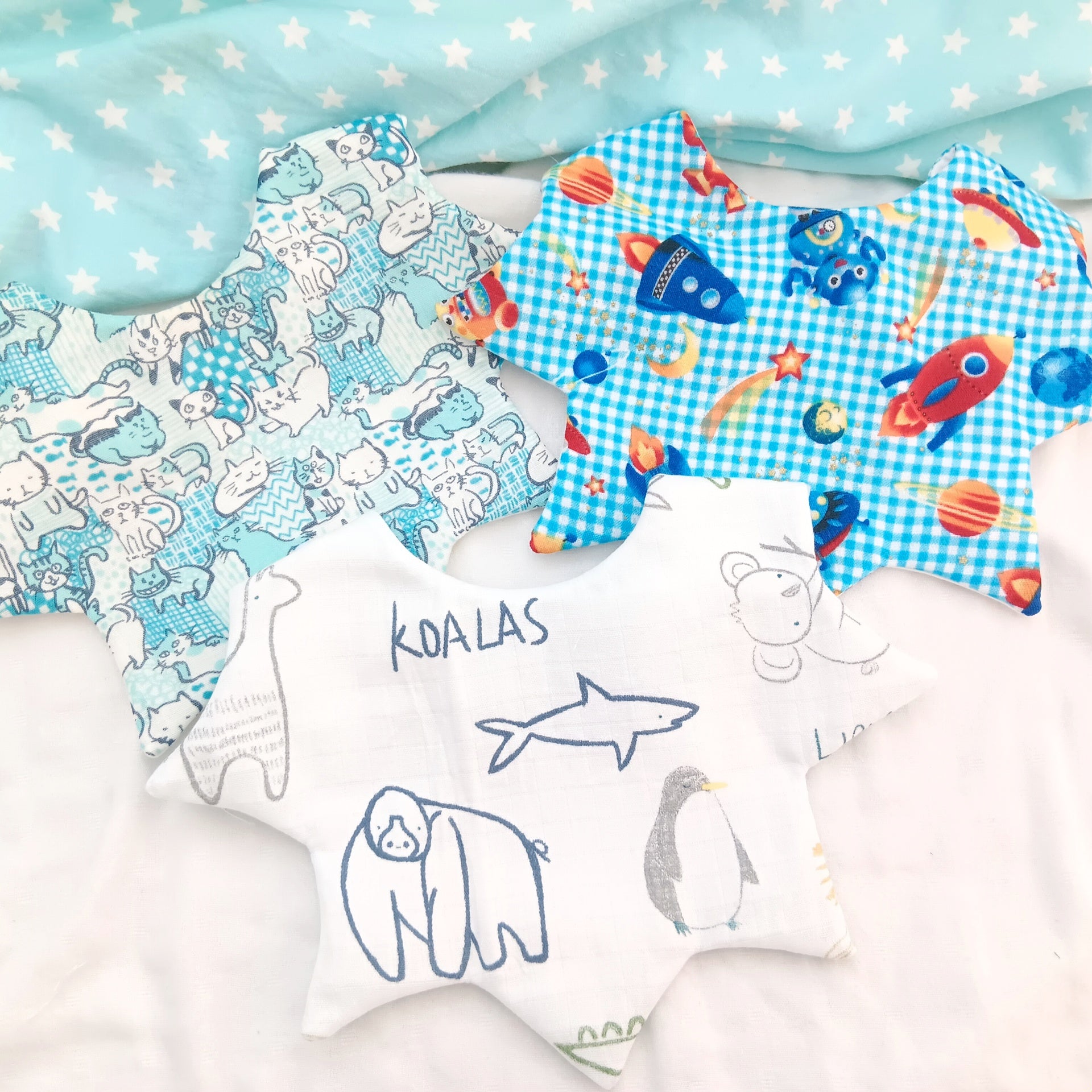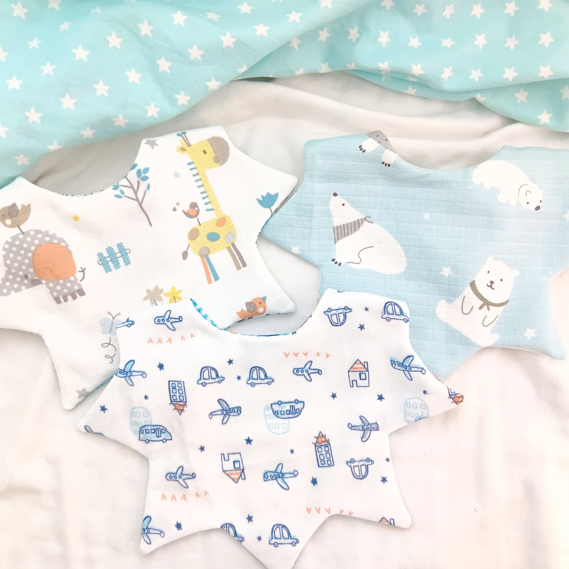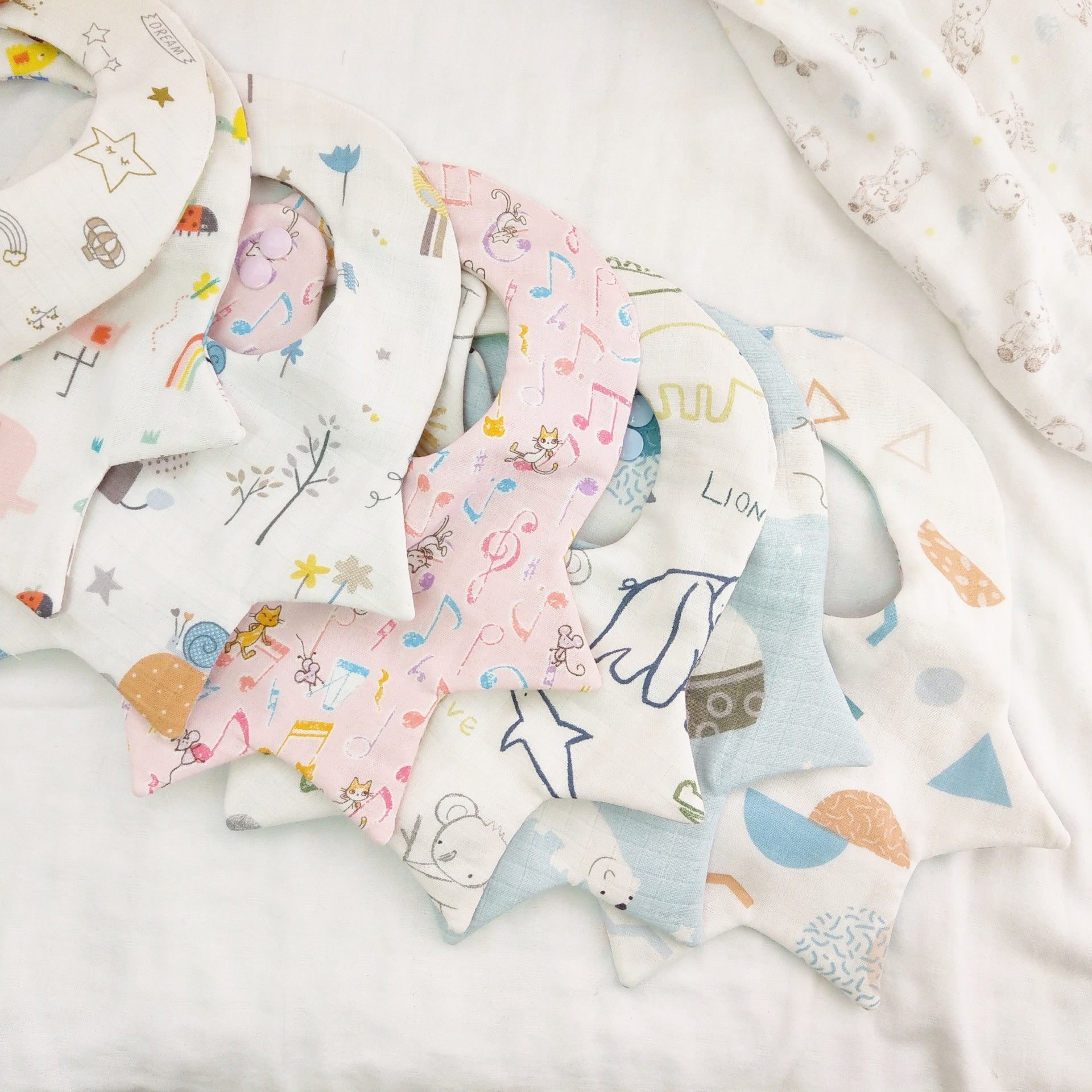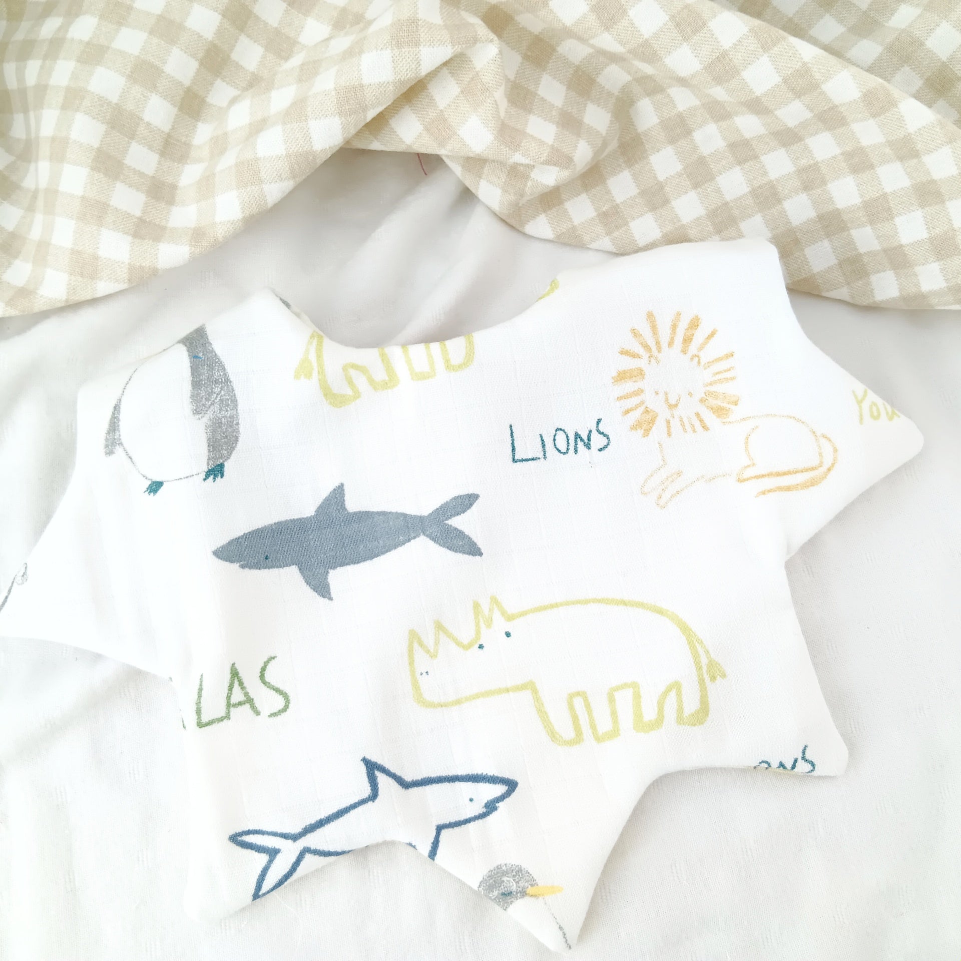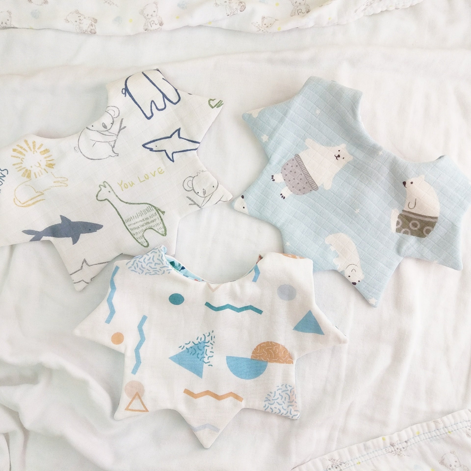 紗布系列-多款可選。海星造型圍兜 (可繡名字)
