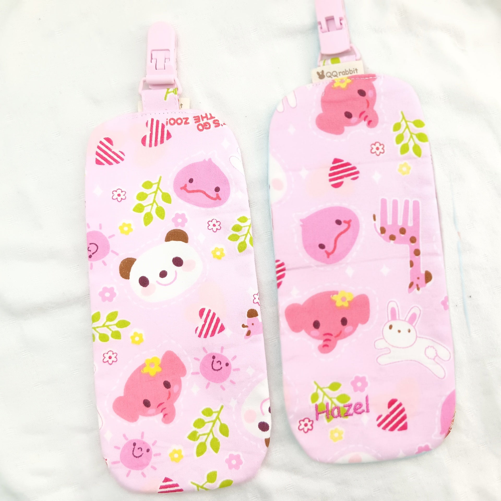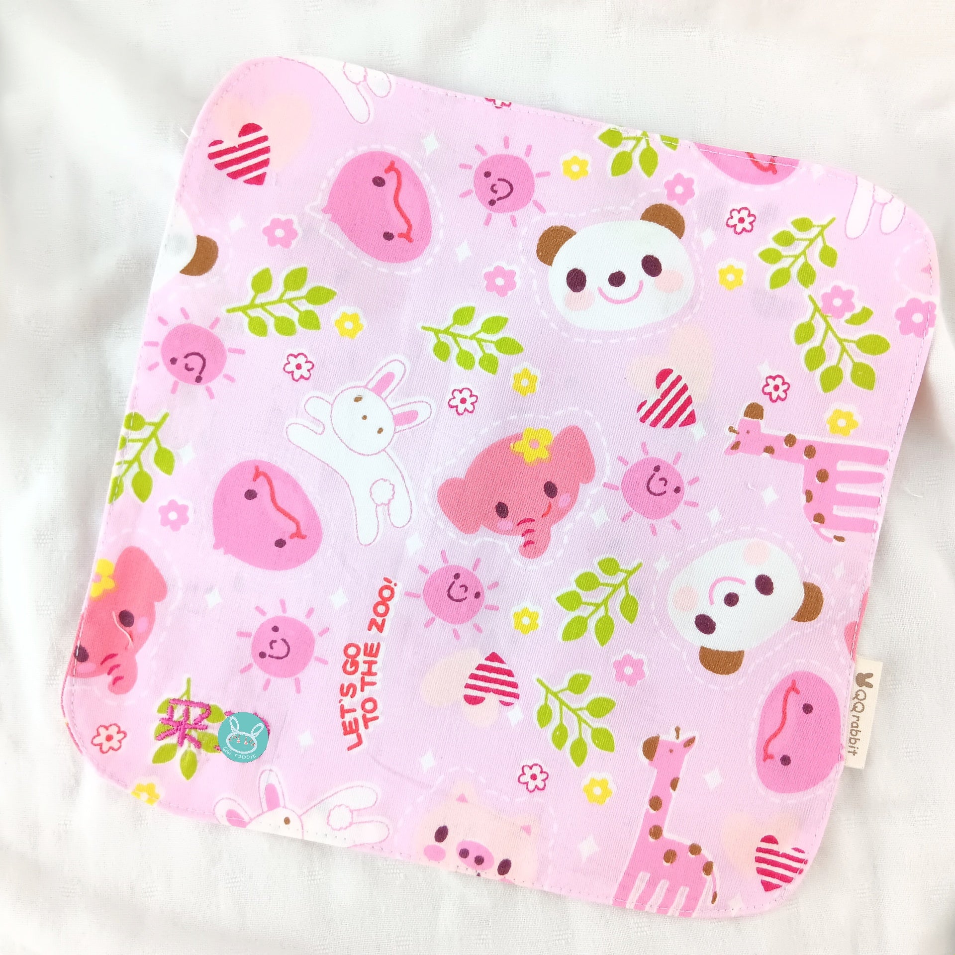 粉紅動物園。雙面純棉手帕 / 附夾手帕 (可繡名字)