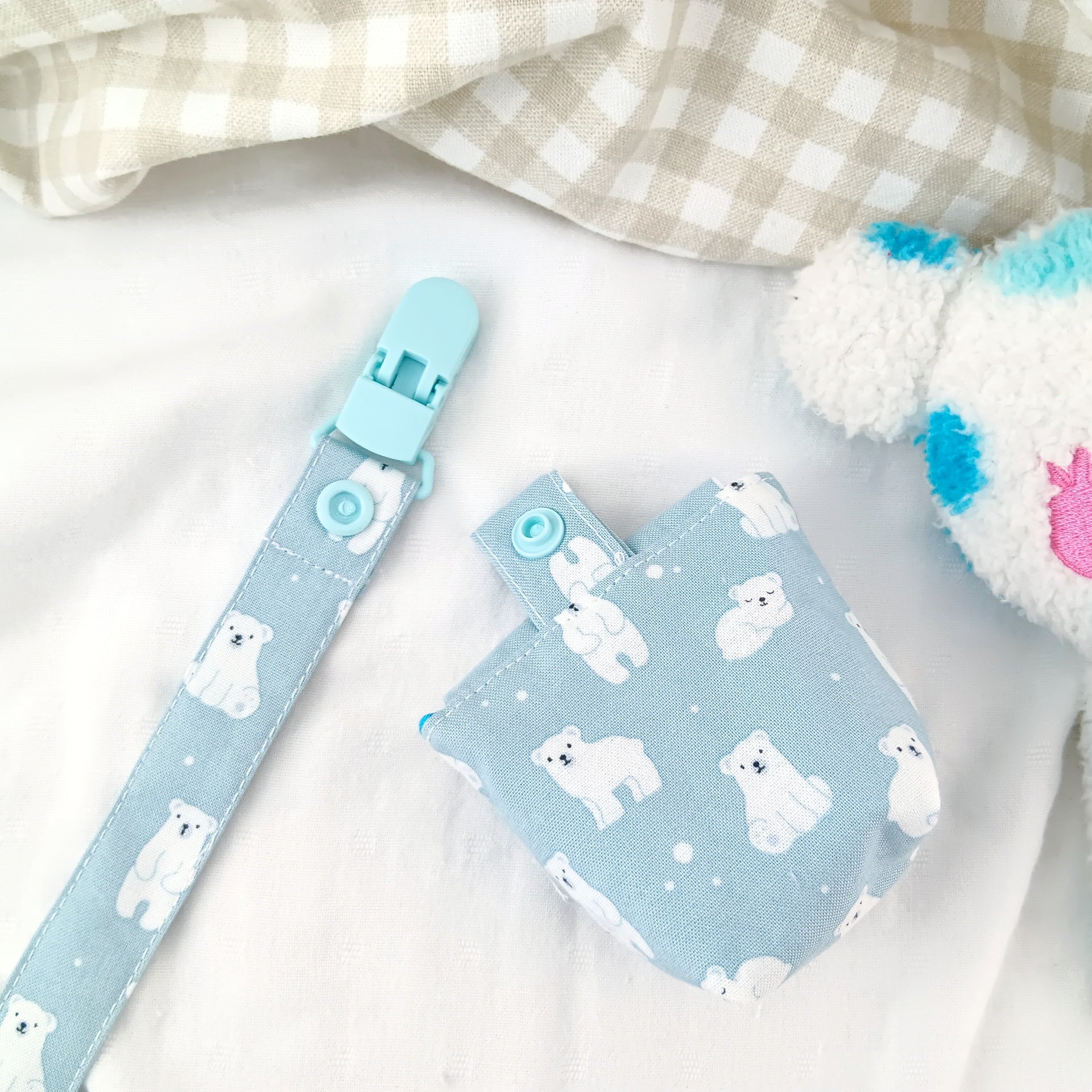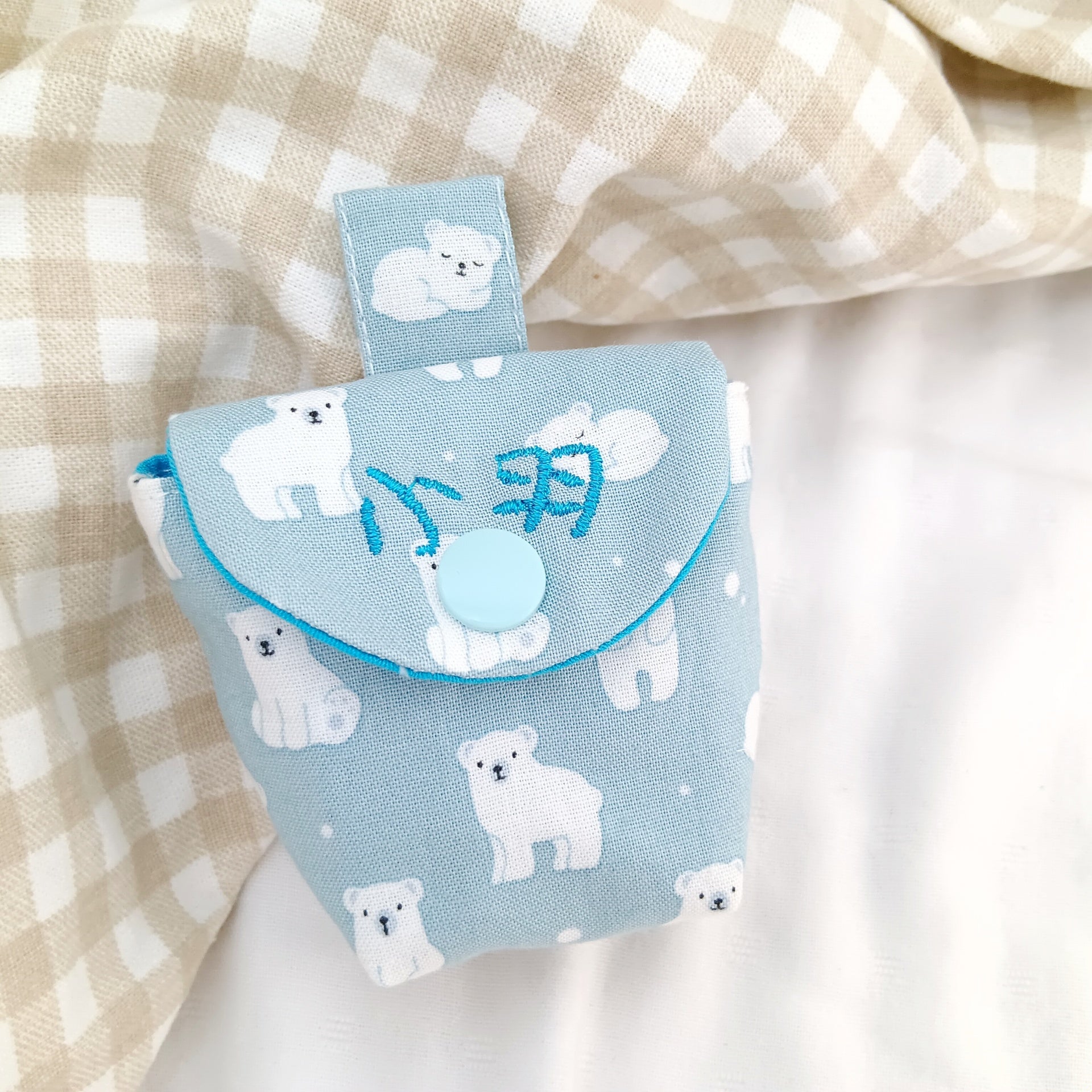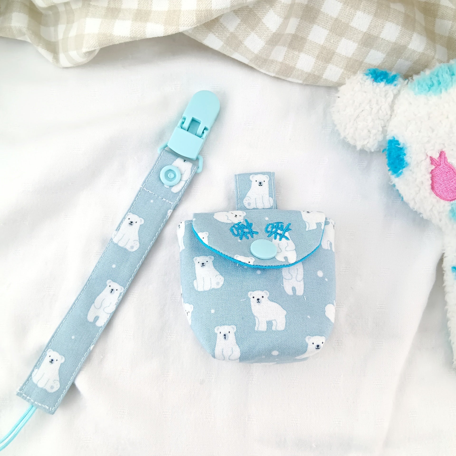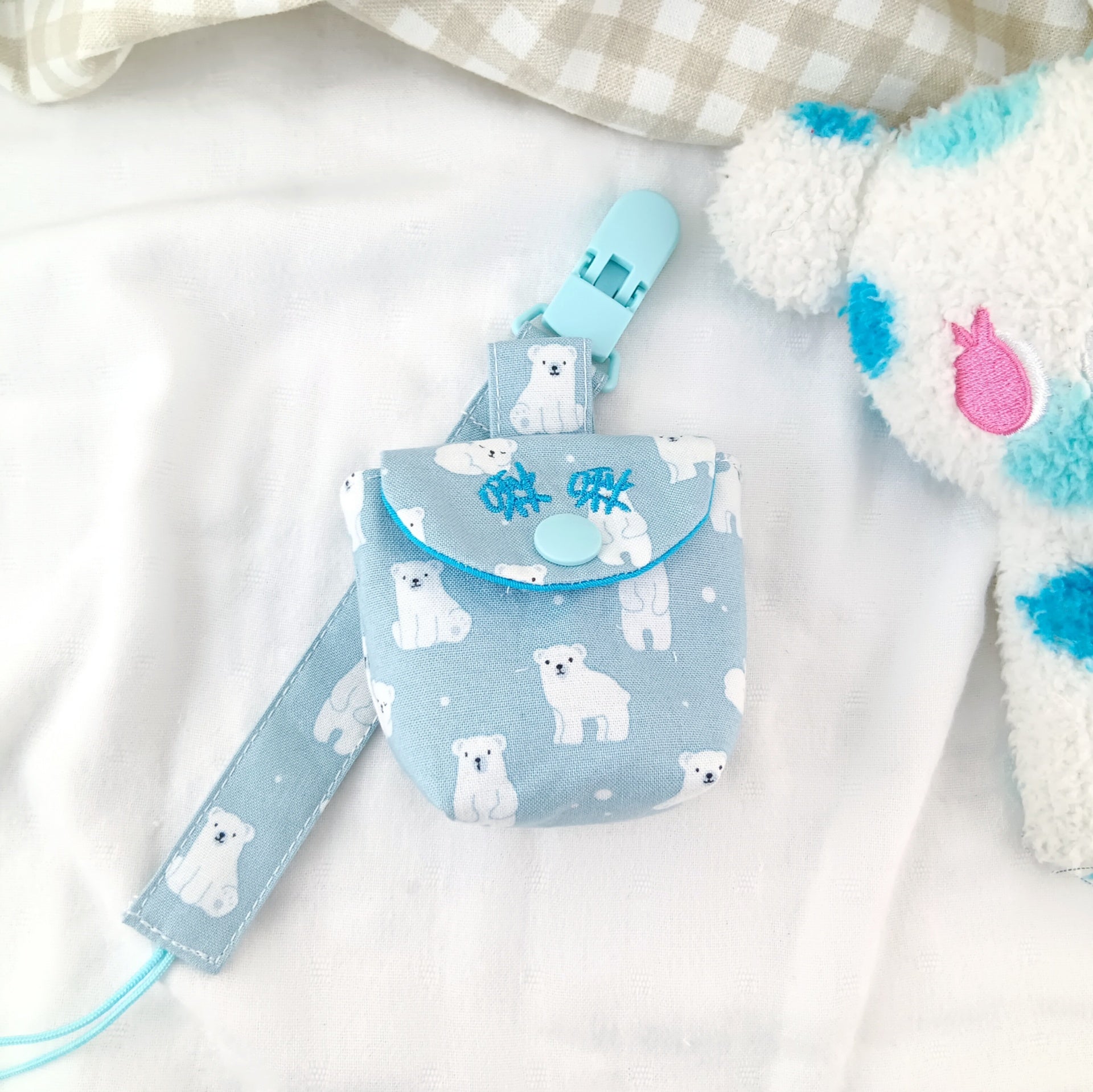 迷你北極熊。奶嘴袋+奶嘴鏈 (可繡名字)
