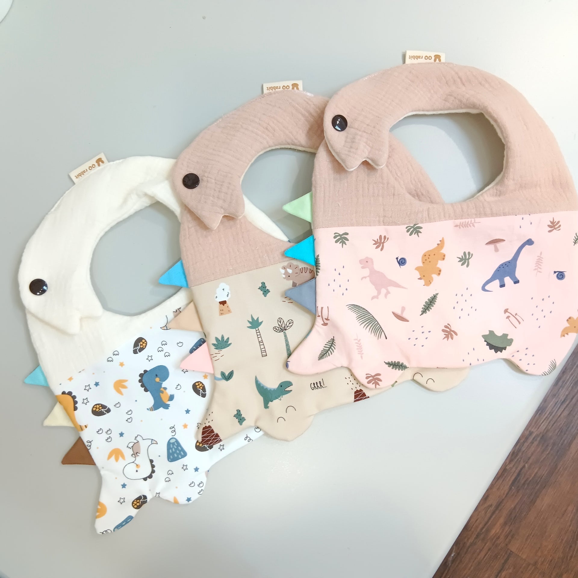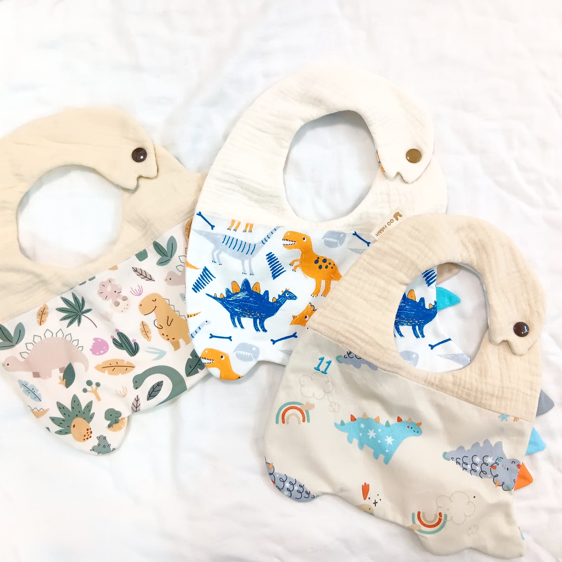 都是恐龍-多款可選。恐龍造型不壓邊圍兜 (可繡名字)