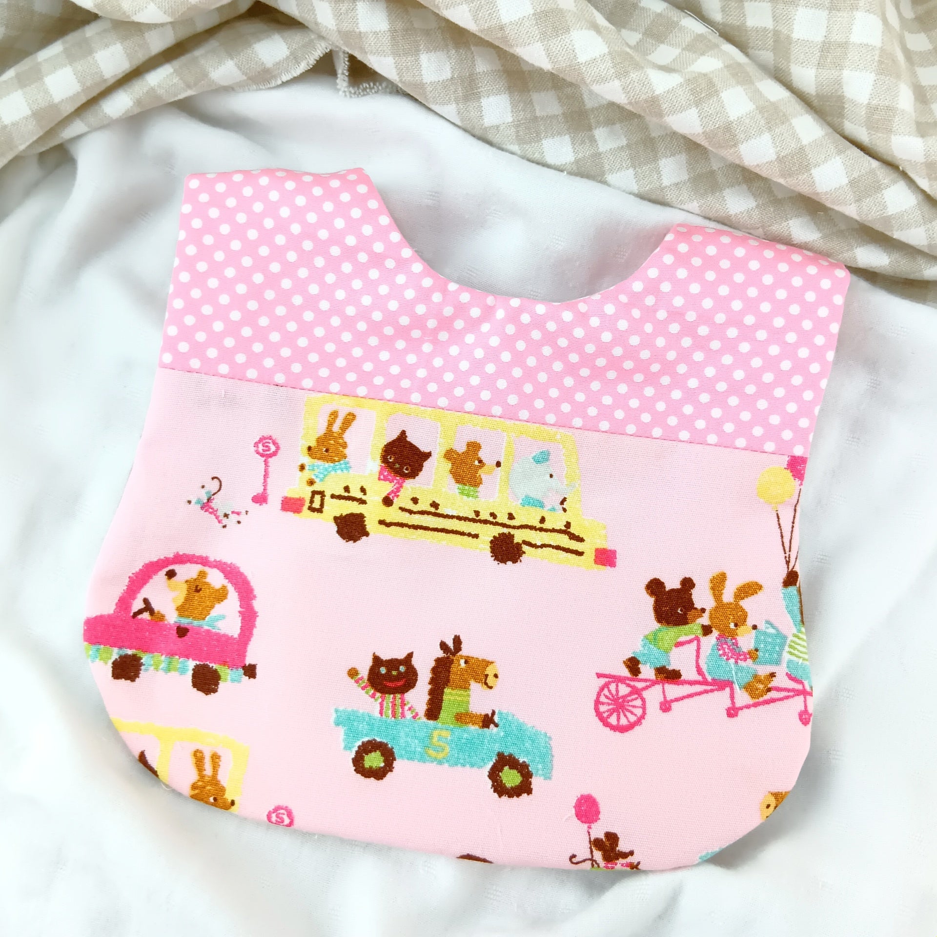 開車動物-2色可選。圍兜口水巾 (可繡名字)